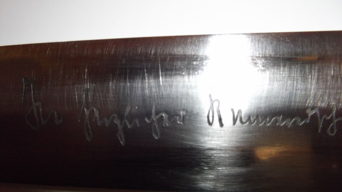 Блин, фото надо хорошие. Гросс-гарда мне не нравится, клейм на ней нет, вроде с другого предмета, как и ножны, верхняя, возможно, и от этой рукояти, по подписи сказать не могу - это очень сложно даже по хорошим фото, естественно, не для меня - я просто не смогу о её подлинности судить, не разбираясь в теме Рёма. Птиц мне не нравится, геометрия для ранней что-то не очень, рукоять зализанная, сидит не особо четко к гросс-гарде.