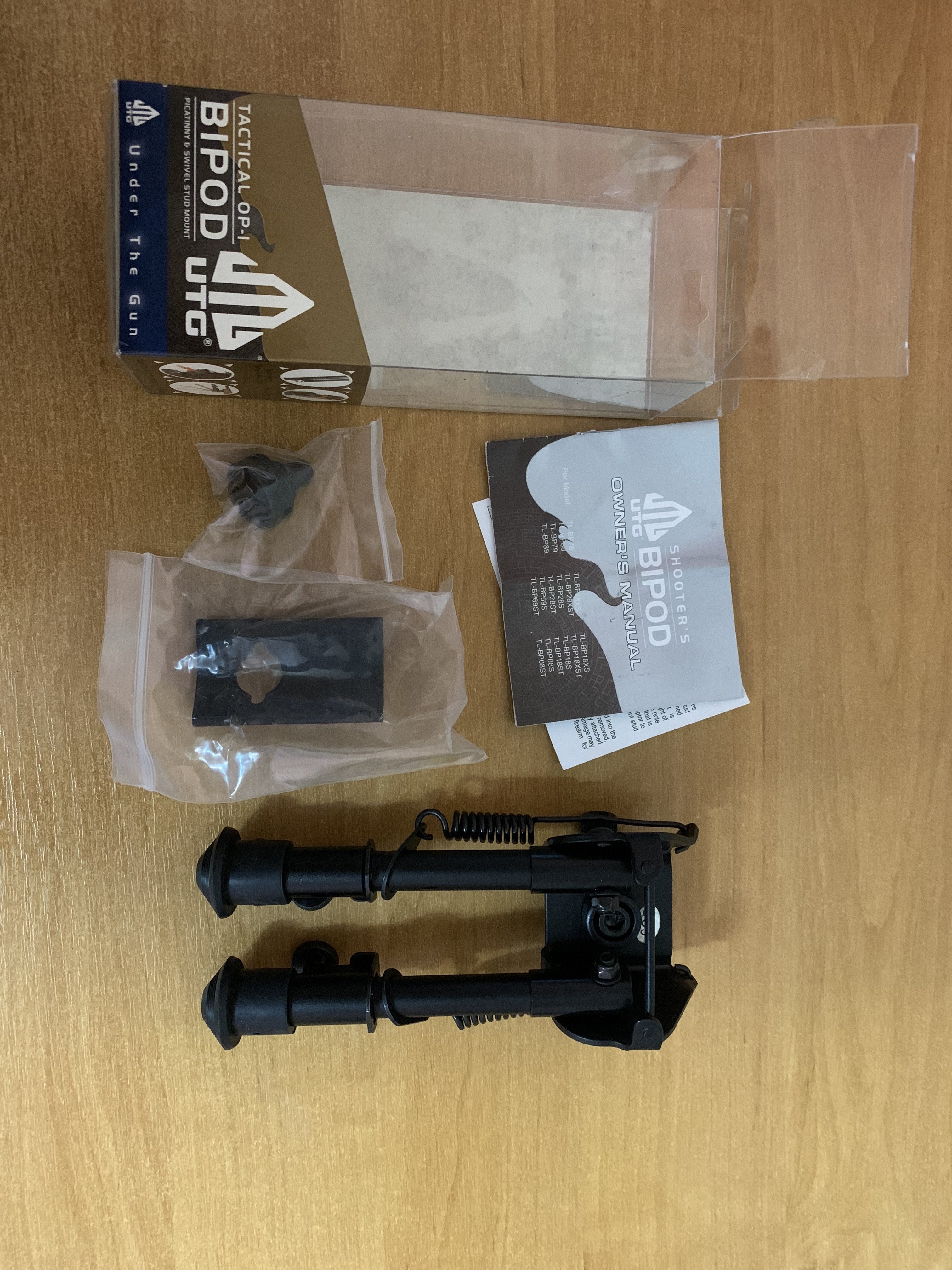 Сошки Bipod UTG Tactikal OP - 1. Крепятся на планку вивер-пикатини или через специальный адаптер ( идет в комплекте ) на антабку под оружейный ремень. Имеет прочную алюминиевую конструкцию с стальной поворотной в горизонтальной плоскости верхней платформой. Складывающиеся подпружынные ножки с возможностью регулировки с помощью колесика Posi-Iock и быстрого складывания с помощью кнопки. Регулировка по высоте в диапазоне 15,4 до 20 см.Вес 326 гр. Новые цена 2000 грн.