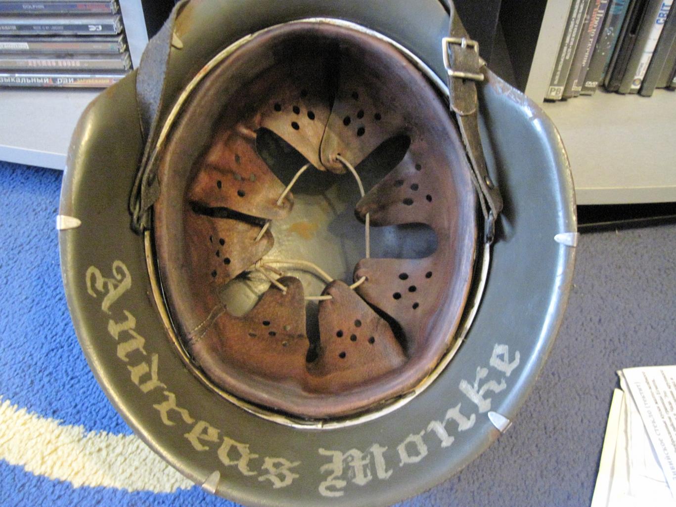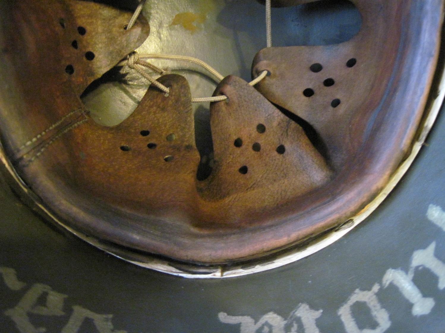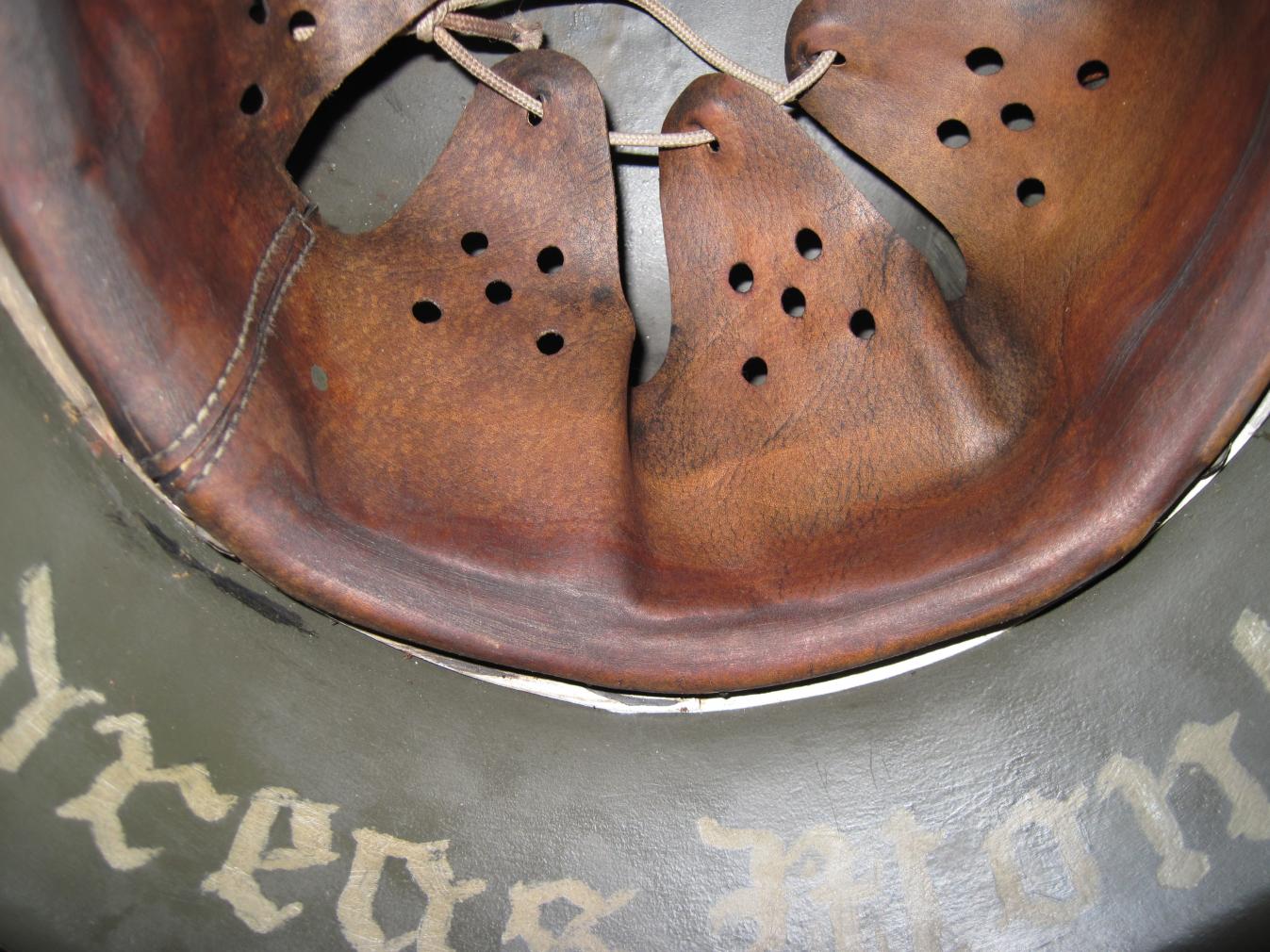 Не стану утверждать, но где то читал (врать не буду - не помню где ) про использование человеческой кожи на шлемах М42. Такой вариант для себя не исключаю - пока скажу так - изучал под микроскопом фрагменты кожи с ганс. шлемов и румынских шлемов - везде кожа КРС (крупный рогатый скот), свиня не попадалась хотя судя по фото - она безусловно использовалась.
