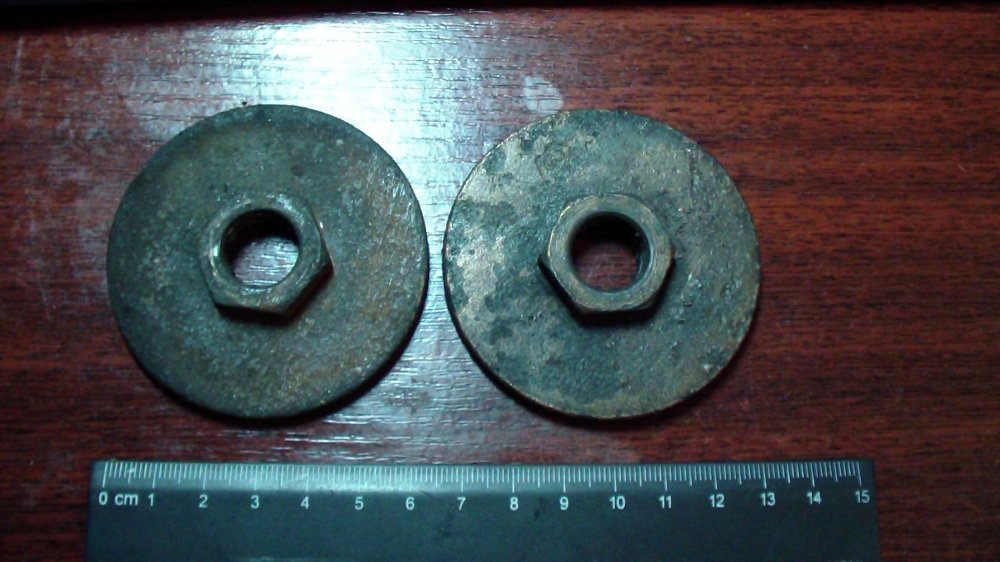 Гайко-шайбы, с остатками омеднения и клеймом. С чего они? Не с Демага, кто в курсе?