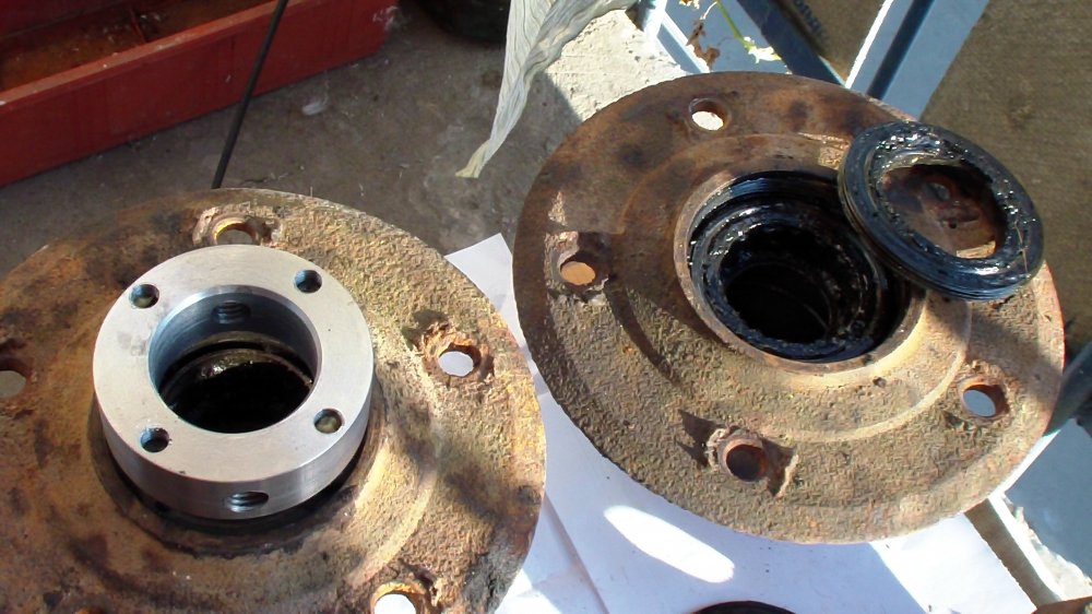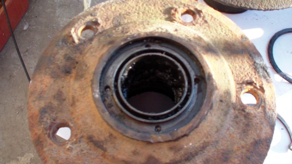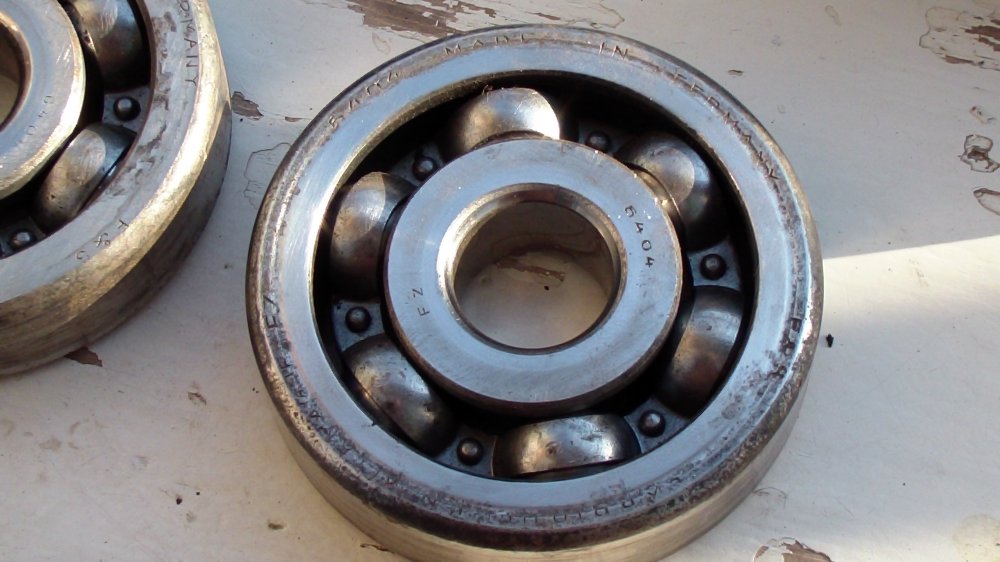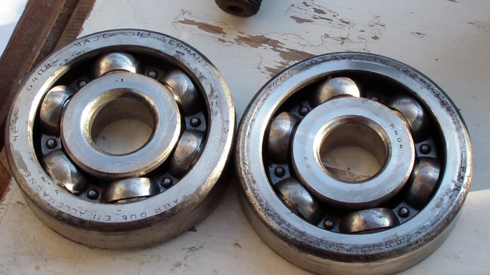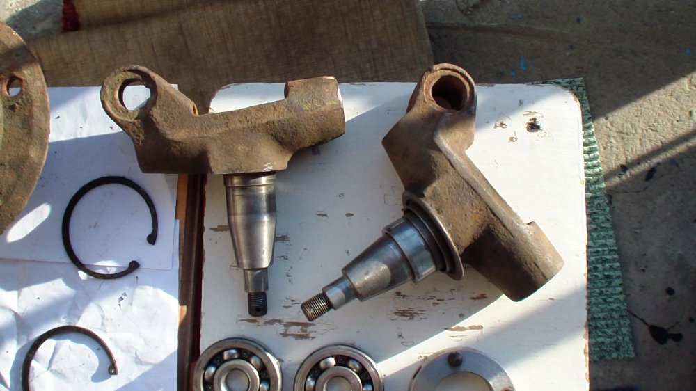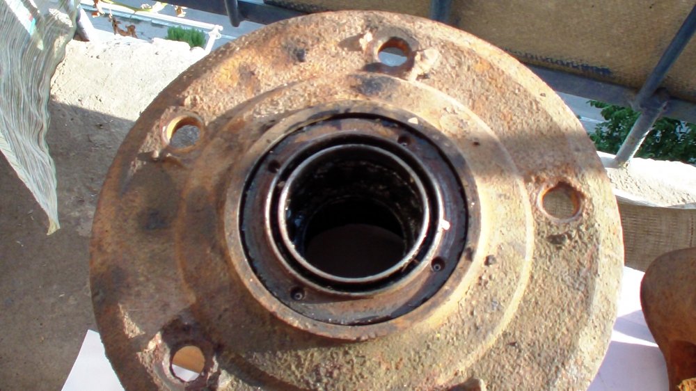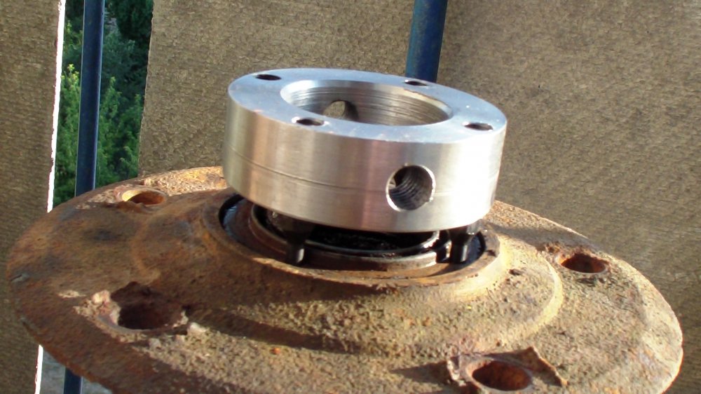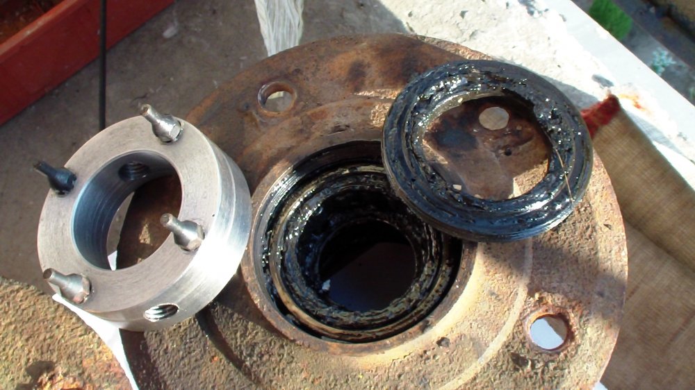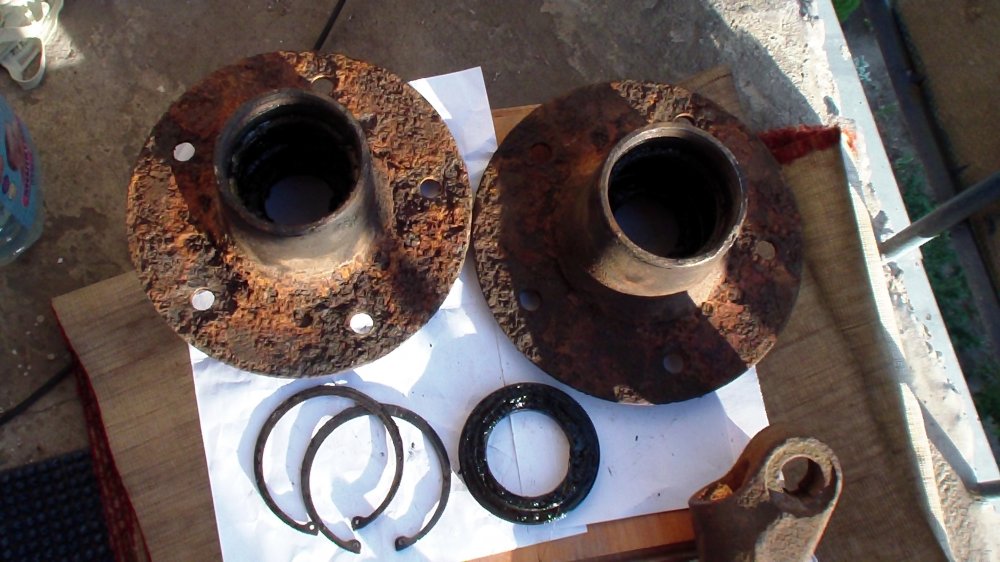 Не буду описывать, скольких мучений мне стоило отделить "мух от фарша", но слава Богу, катки откручены, чермет выковырян-выбит с цапф. И тут актуально встал вопрос аккуратной разборки ступиц, отделения от них цапф. Ну цапфы отделились сравнительно легко, а вот разборка ступиц застопорилась из-за внутренней ступичной гайки с четырьмя углублениями под какой-то спецключ. Т.к. зубилом и молотком не хотелось откручивать эти гайки, дабы их не повредить, не мудрствуя лукаво, на мощностях одного из инструментальных производств города был разработан и воплощён в метале специальный ключ для этих гаек. Порадовали родные немецкие 6404 подшипники тяжёлой серии производства завода F&S (Фихтель и Сакс). Немного озадачили гайко-шайбы, которыи крепились к ступице сами цапфы. Никто не встречал подобных? Фотоотчёт прилагаю.
