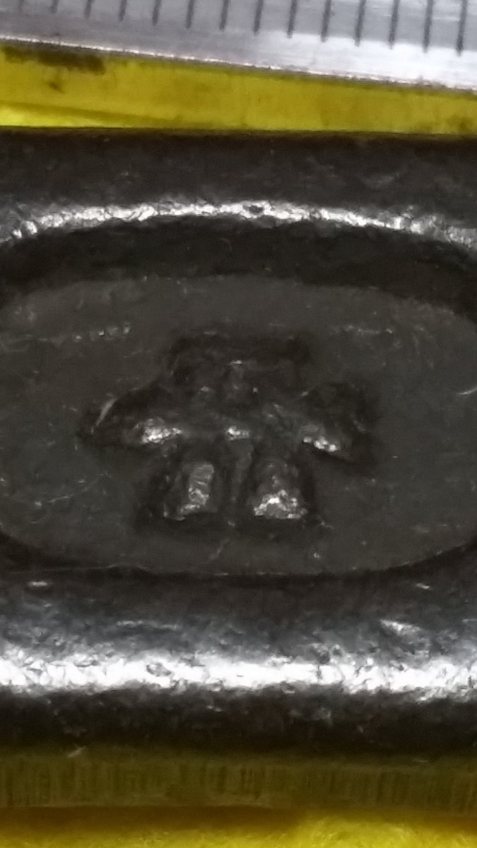 Ключ гаечный рожковый хром-ванадиевый: https://www.google.com/search?q=ключ+40ХФА&biw=1280&bih=888&source=lnms&tbm=isch&sa=X&ved=0ahUKEwj3qIuW--HLAhWBqCwKHQn8Dm8Q_AUIBigB http://www.splav-kharkov.com/mat_start.php?name_id=162 или http://metallicheckiy-portal.ru/marki_metallov/stk/40XFA По более качественному фото клейма, наверное, можно будет определить изготовителя, а там, глядишь, и возраст находки определится. Клеймо такое? Может быть эта ссылка Вам поможет: http://www.chipmaker.ru/topic/2753/page__st__40 Честь имею!
