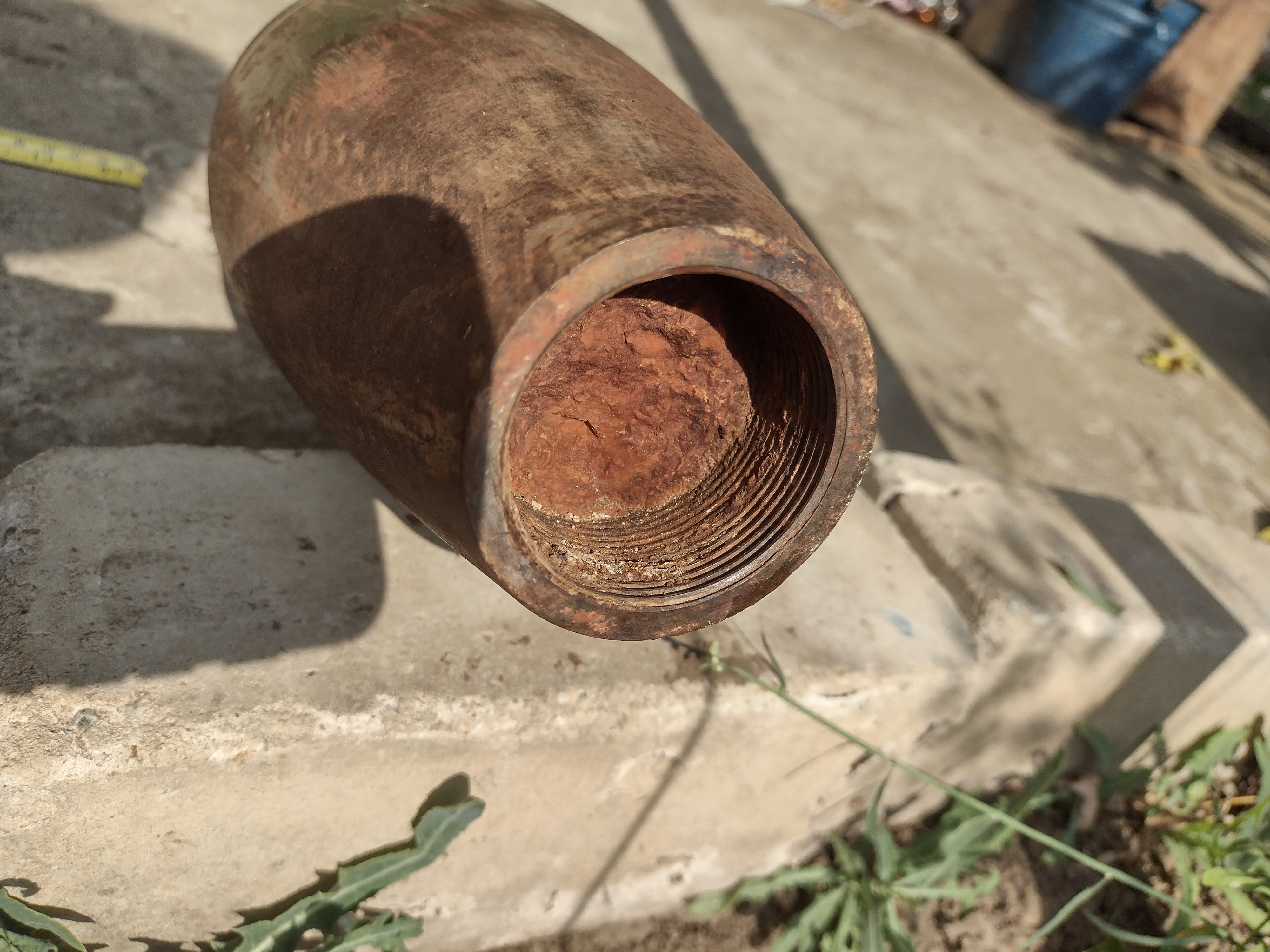 подскажите ещё что за вундервафля к нам прилетела, опознать не могу, пояска нет диаметр толстой части 118,5 мм длина 47 см в дне крупная резьба под стабилизатор, взрывак, вообще уникальный с кучей сквозных отверстий, с ноны нифига непохоже