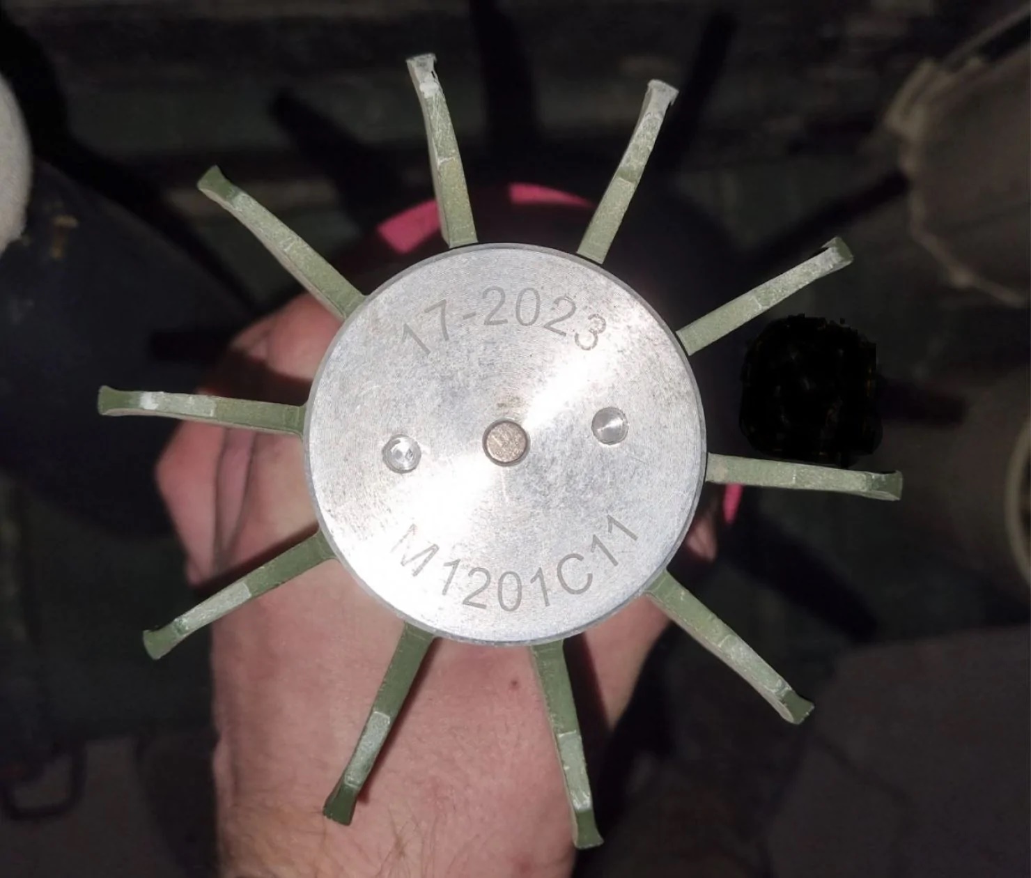 Подконтрольная Украине, территория, если я говорю, взрывак, то это взрывак, в дне глухое отверстие, для стабилизатора, никода не видел в взрываке 6 сквозных отверстий, форма взрывака и сама мина похожи на иранскую, и китайскую, но в иранской нет проточки для обтюратора, кстати обтюраторы есть в москальских 3Ф2, это говно тоже прилетало...