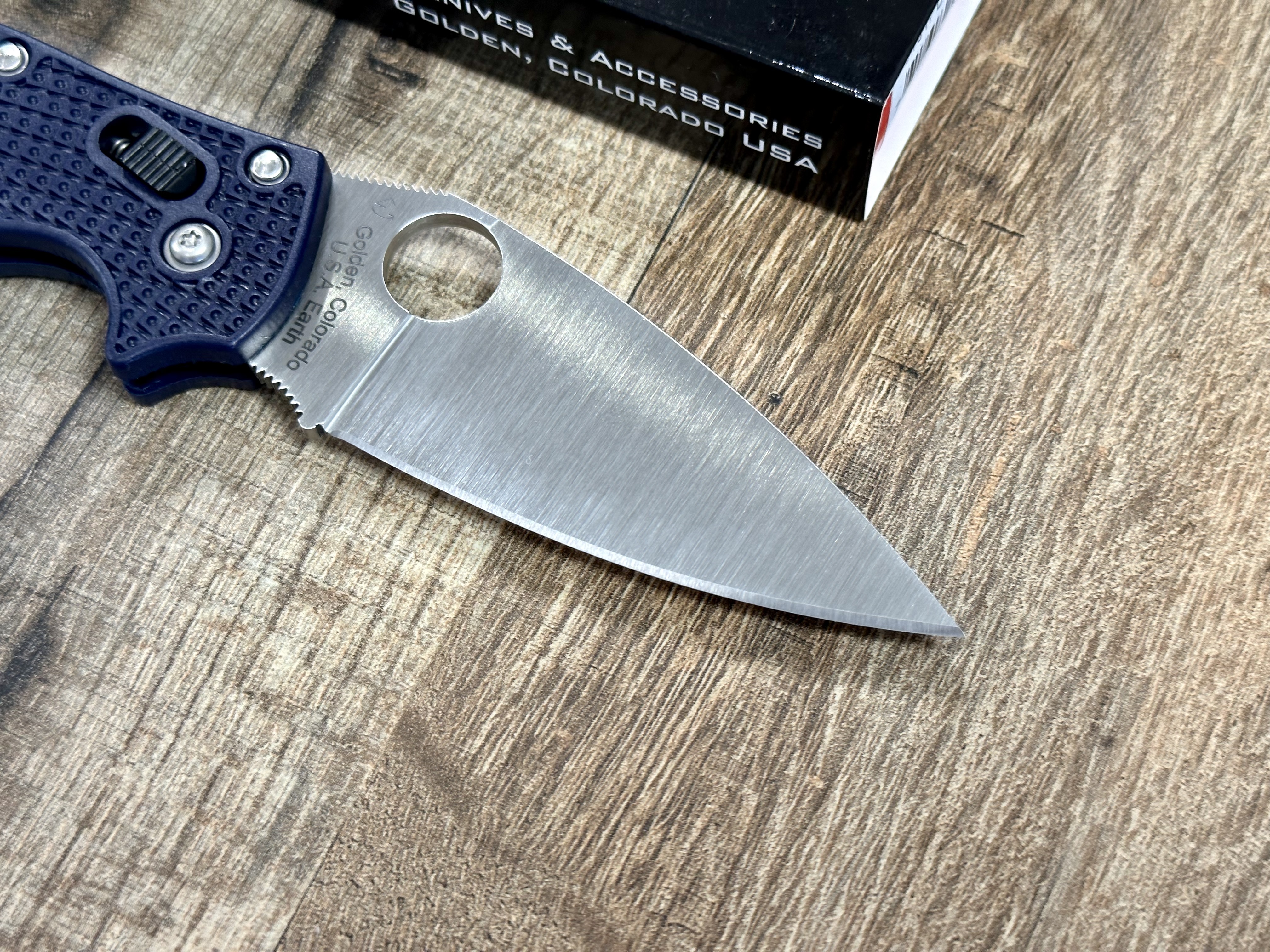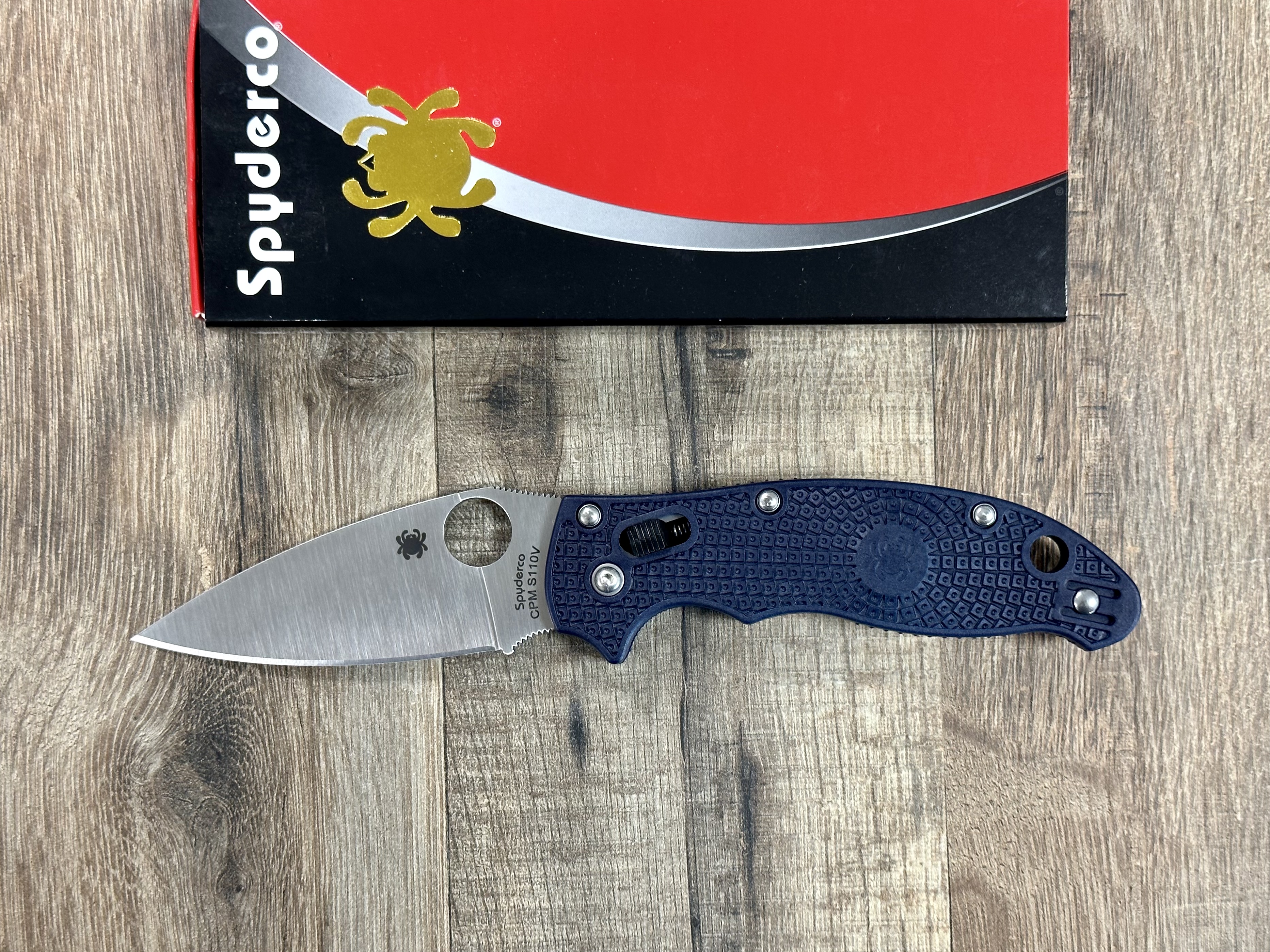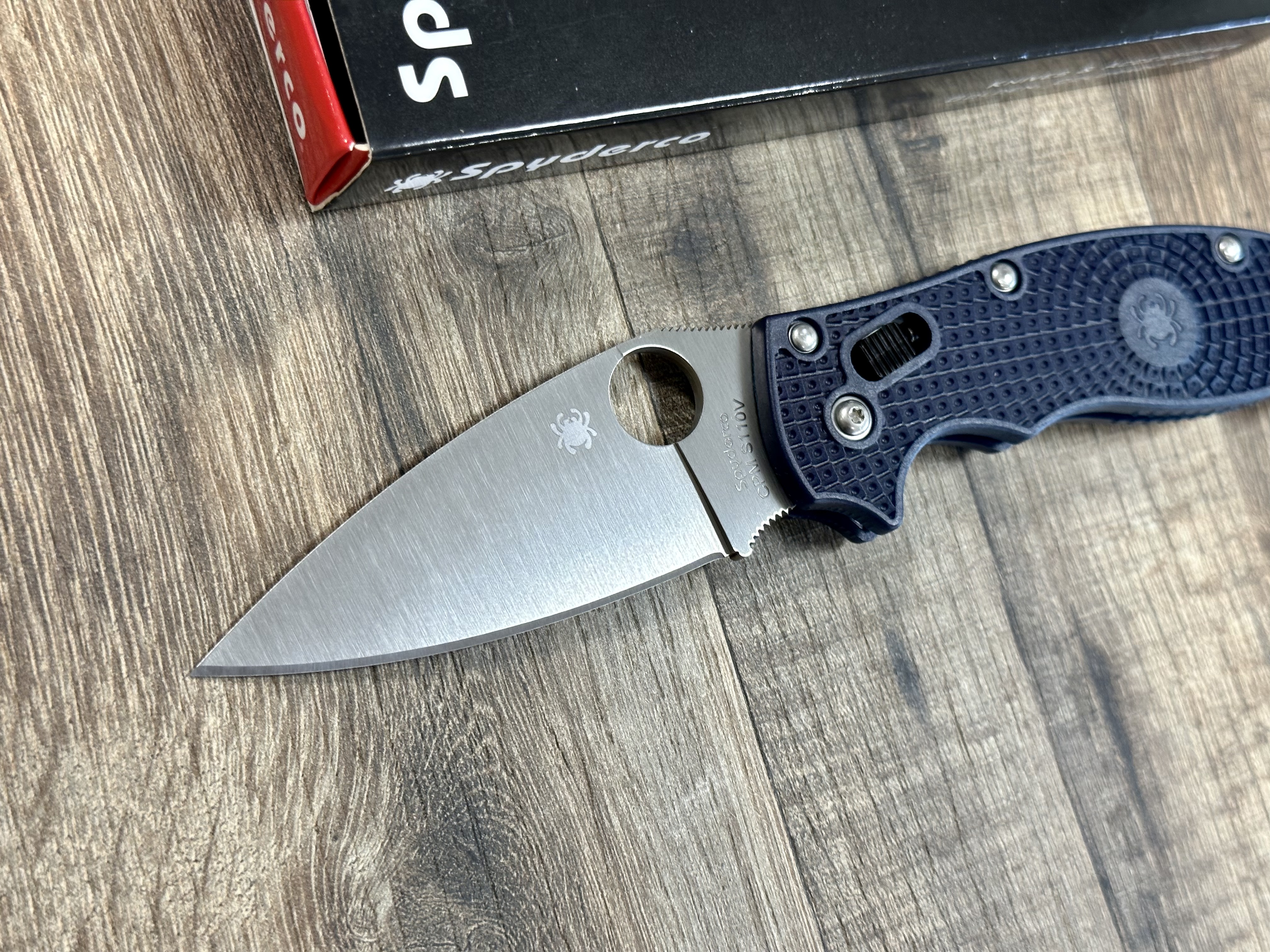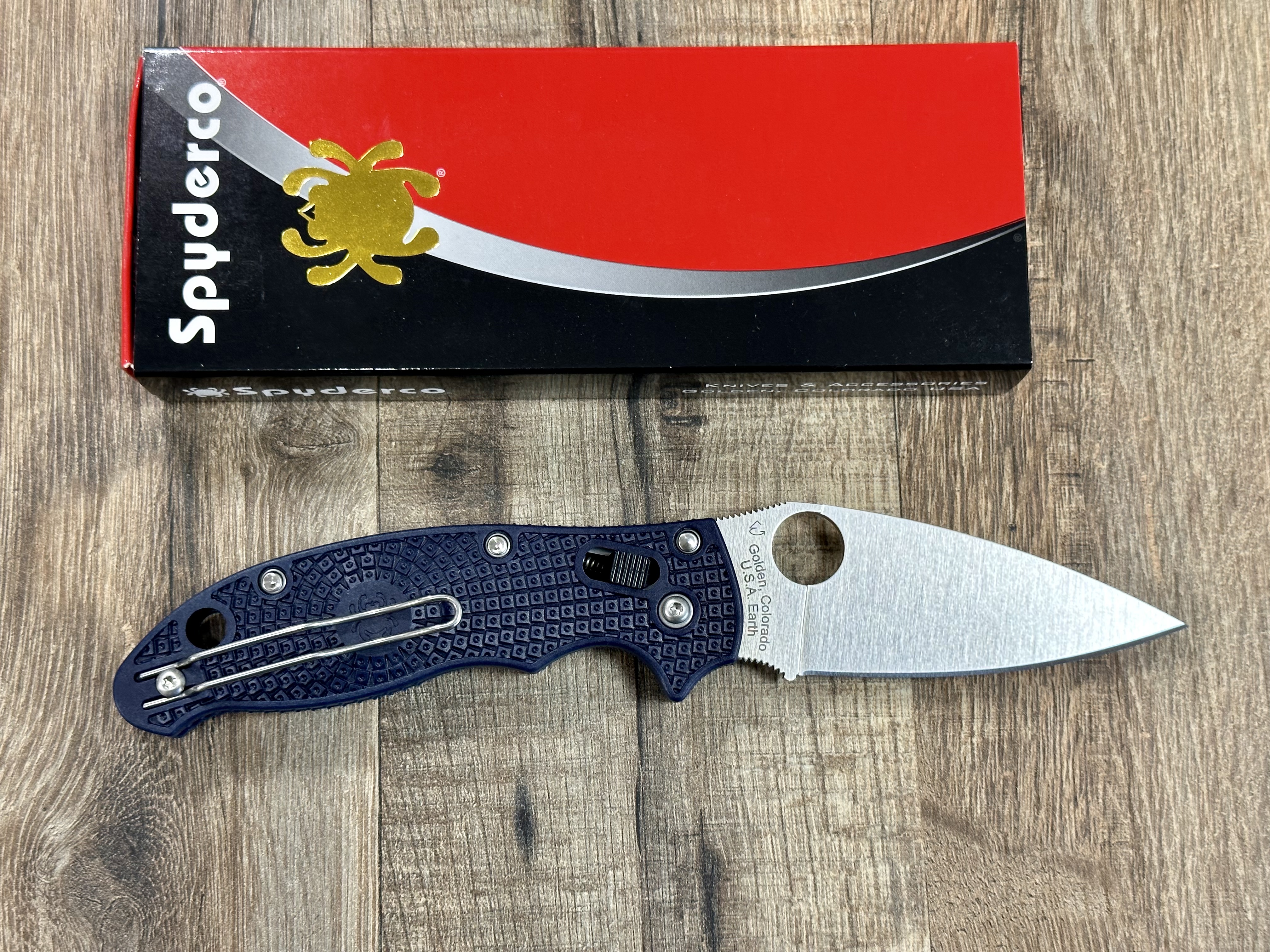Новый Spyderco Manix 2, на клинке топовая суперсталь CPM-S110V, облегченная версия ножа с рукоятью из FRN темно синего цвета, совокупность вышеупомянутых факторов делают этот нож достаточно легким, при этом удобным благородя эргономике рукояти и в то же время очень резучим. Цена: 7 999