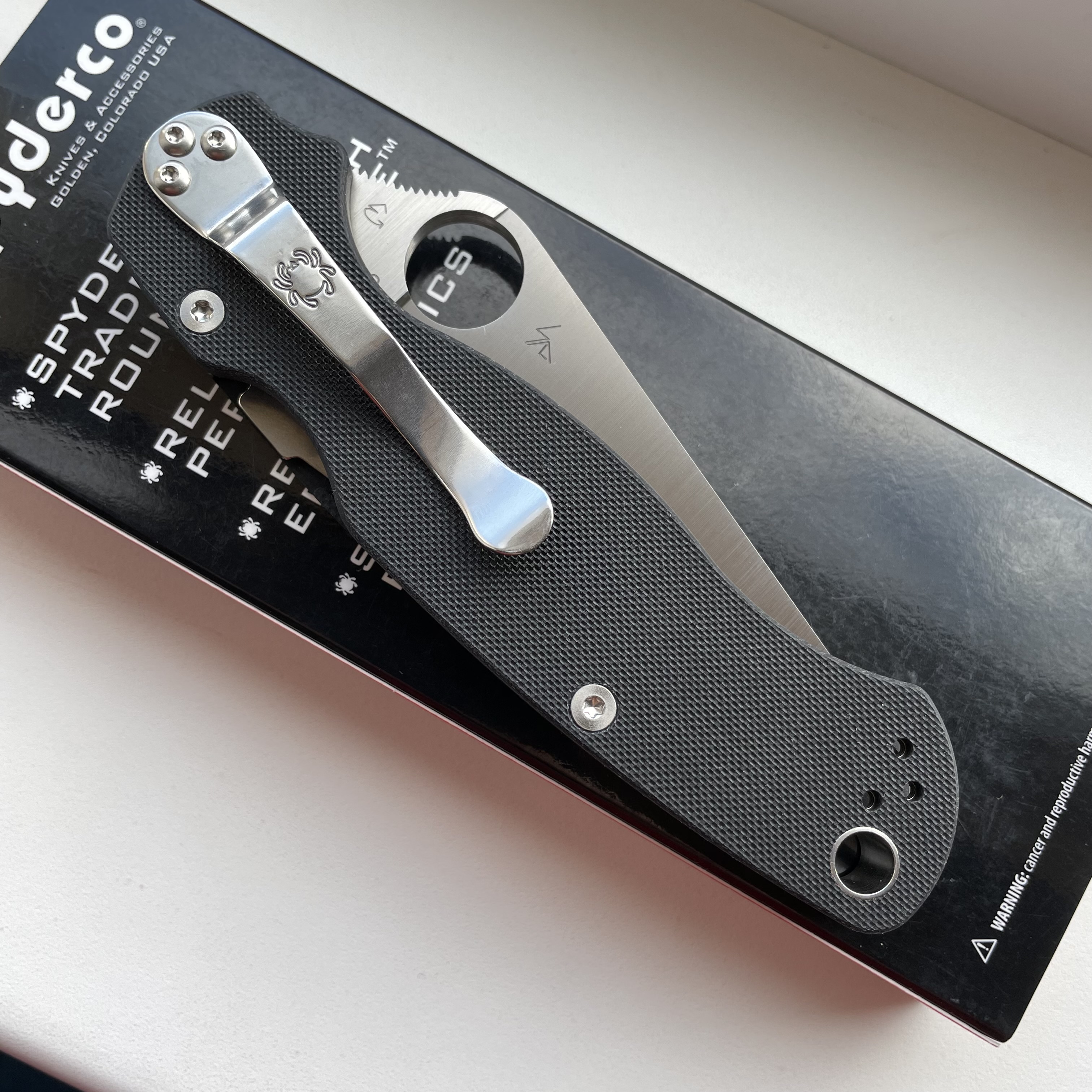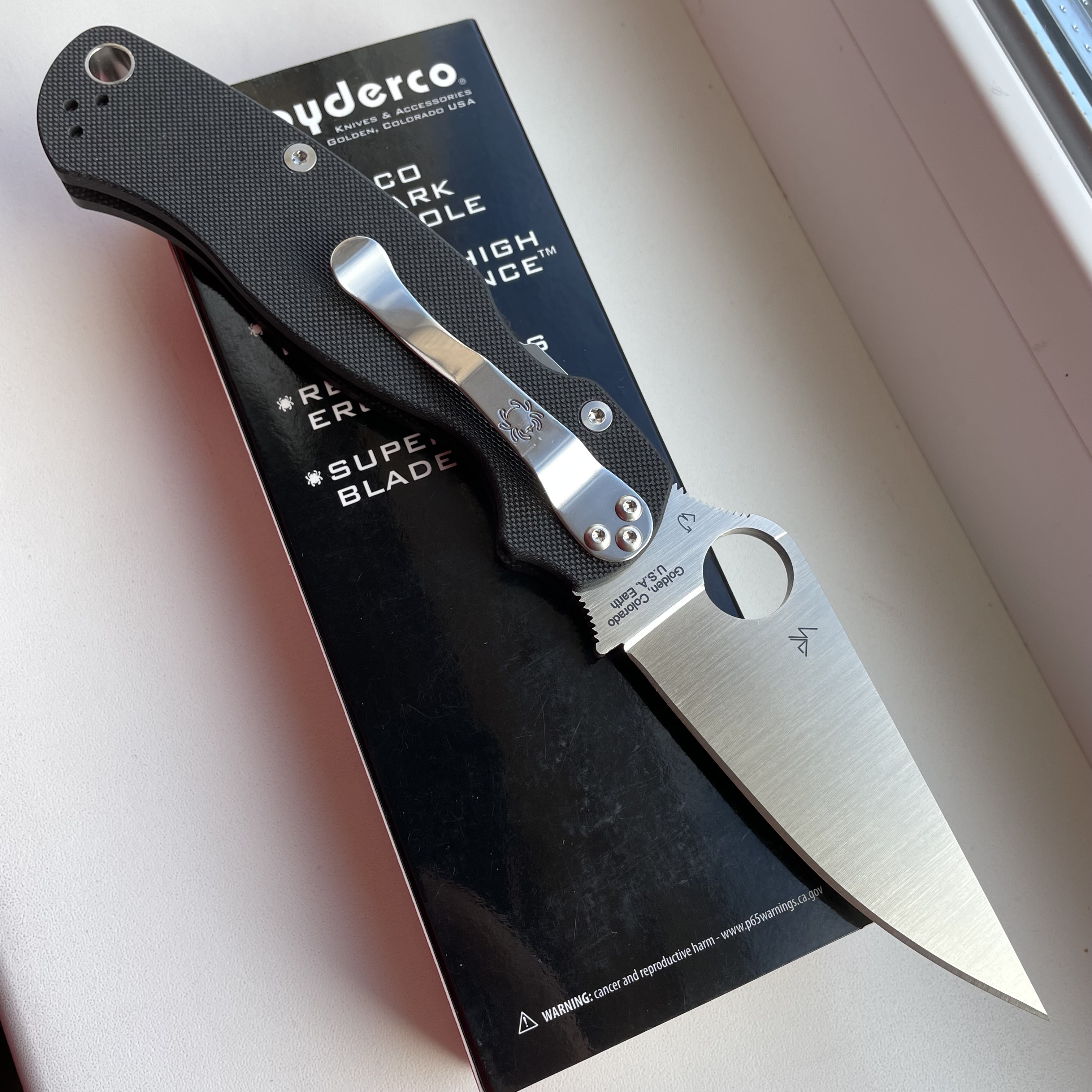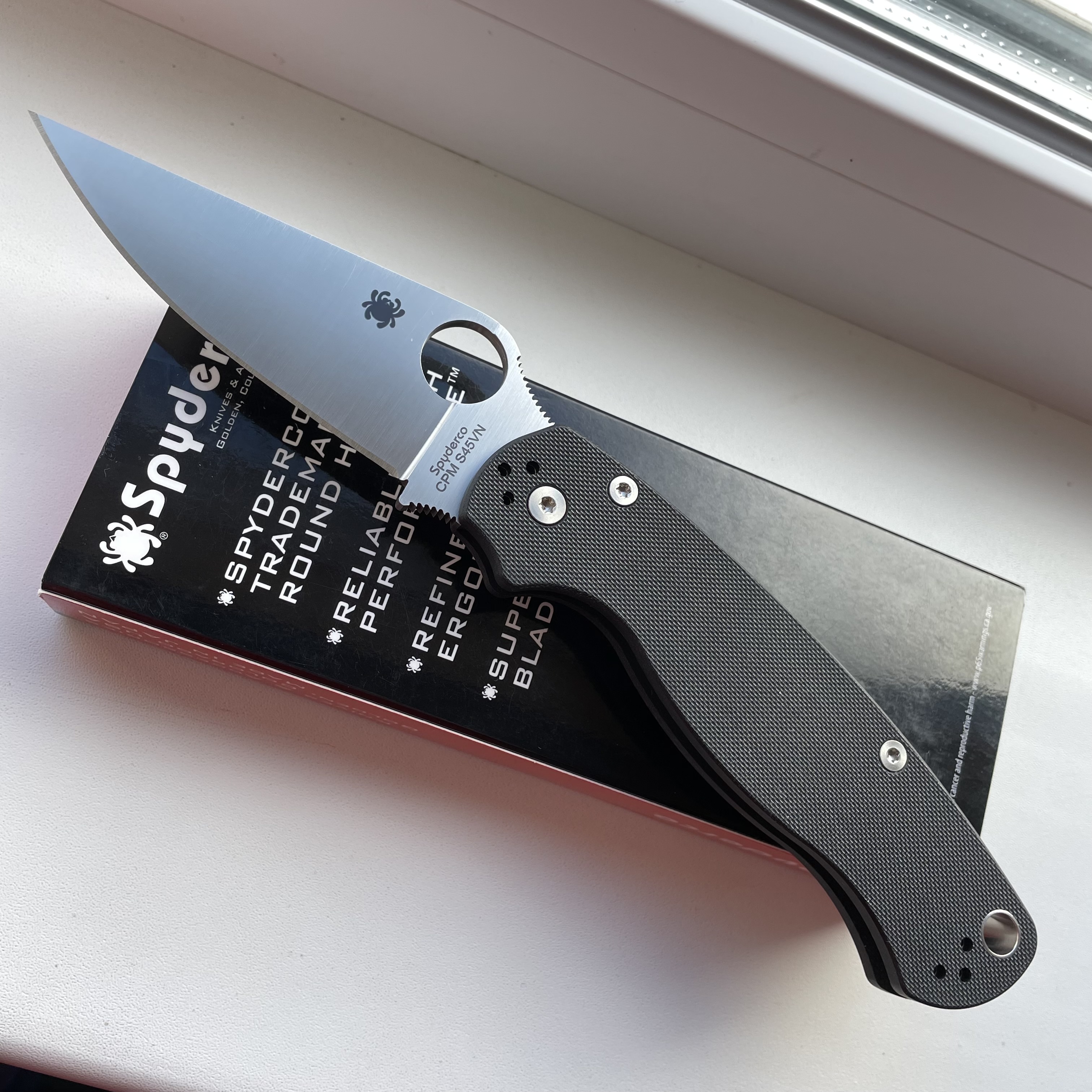 Spyderco Paramilitary 2 Black G10 CPM S45VN (стан нового, без коробки) Ціна - 7000грн. ТТХ: Матеріал клинка - CPM-S45VN Довжина клинка - 87 Твердість клинка (HRC)60-61 Фінішна обробка -satin Товщина клинка - 3,7 мм Матеріал руків'я - G-10 Загальна довжина - 209 мм В закритому стані - 122 мм Кліпса Знімна 4-позиційна Механізм фіксації - Compression Lock Вага - 108г Країна виробник - США #Spyderco #Paramilitary2 #S45VN