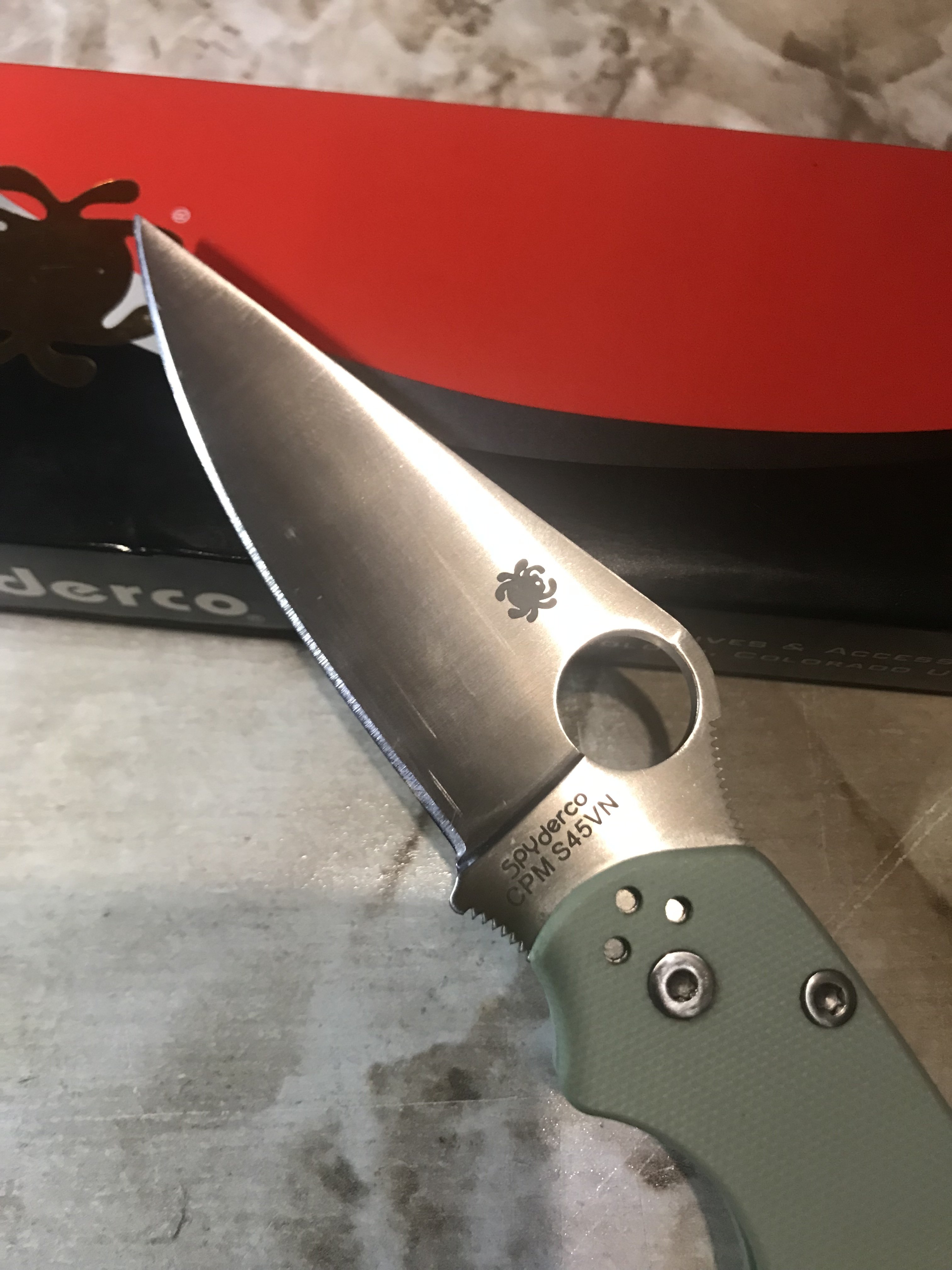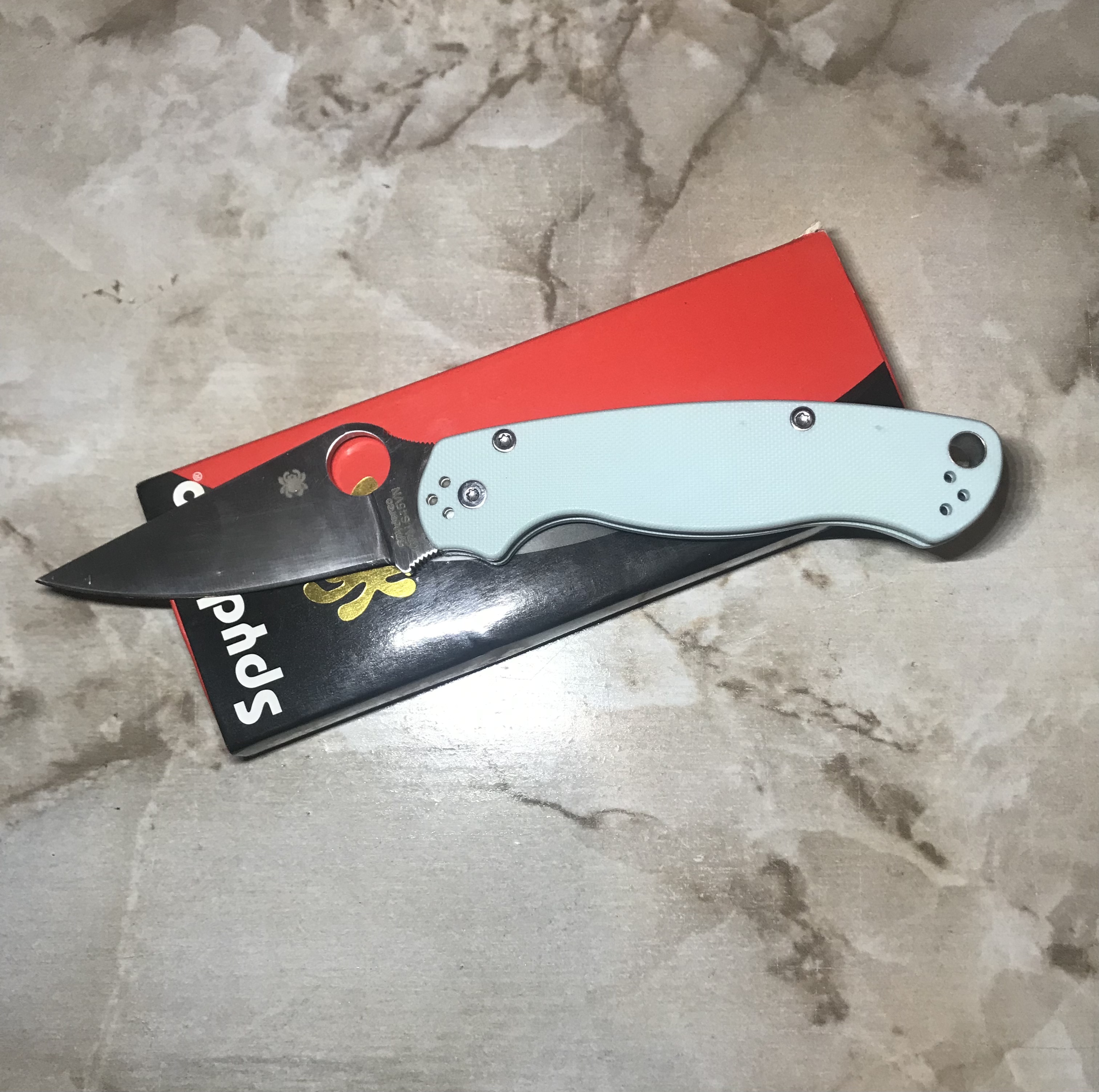 Продам хорошу репліку на Spyderco Paramilitary 2. Ніж б/в, у хорошому стані. При падінні ножа, на G10 утворилось пару мікро тріщин, на які наніс гелевий супер клей (показав на останньому фото), на функціонал не впливає. Оплата на картку, поїде НП. Ціна: Продано! З пов. Матеріал руків'я G10 Марка сталі 8Cr13MoV Твердість HRC 54-56 Фініш клинка Satin Тип замка Compression Lock Вага 120 гр Колір aquamarine Товщина обуху 3.7 мм Довжина клинка 88 мм Загальна довжина 210 мм