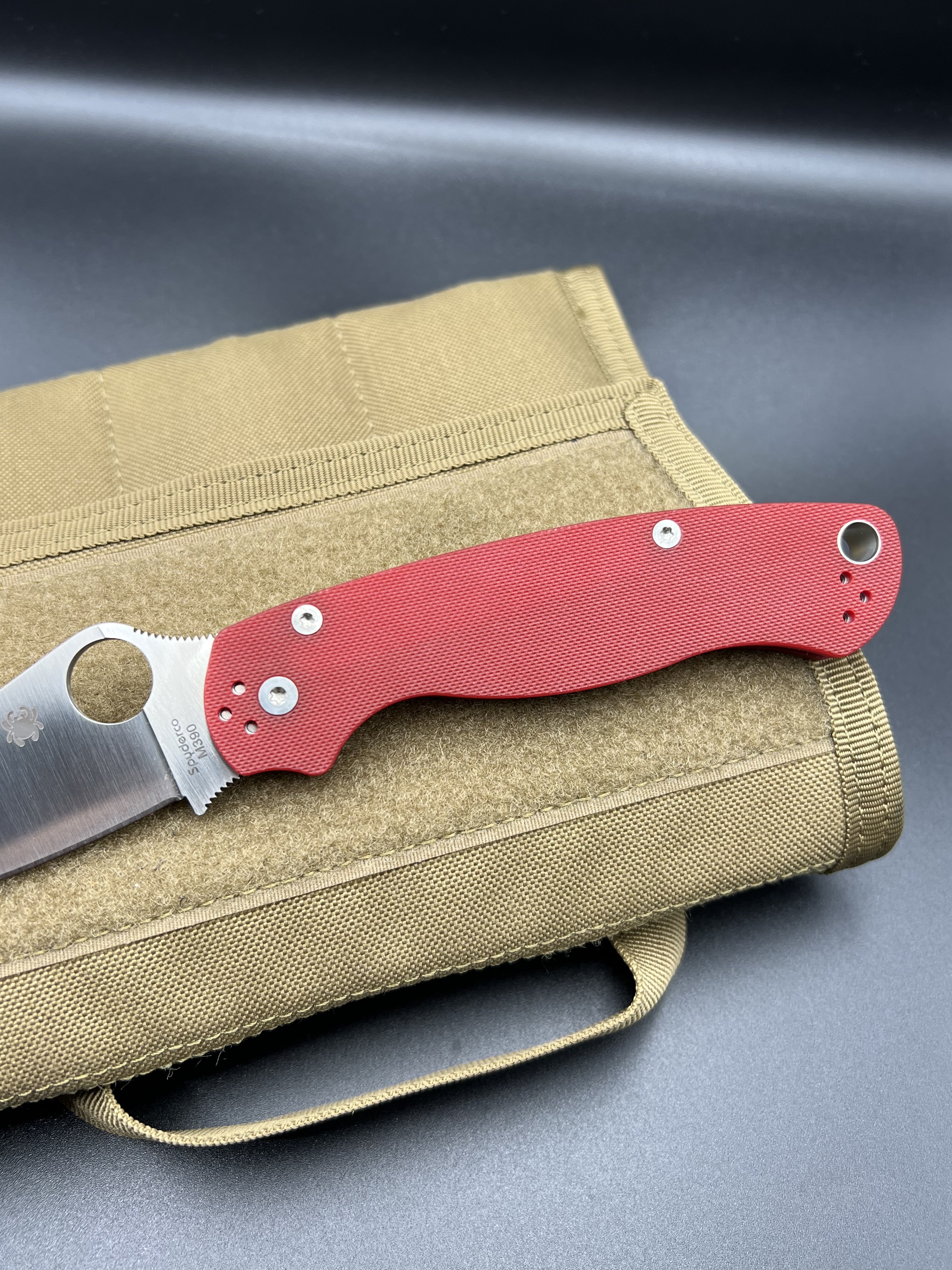 Spyderco Paramilitary 2 M390 Стан - Ідеальний стан, не потребує заточки леза, має одну подряпину на лезі, помітну під певним кутом. На ножі стоїть титанова фурнітур, коробки немає Ціна - 8 000 грн Оплата на картку ПУМБ Відправка за рахунок покупця Характеристика: •Вага - 106 г •Довжина леза - 87 мм •Загальна довжина - 210 мм •Товщина клинка - 3.5 мм •Товщина рукояті - 12 мм •Матеріал клинка - M390 •Фінішна обробка клинка - Сатин •Твердість клинка - 60-62 (HRC) •Тип замку - Compression lock •Матеріал рукояті - G-10 •Колір - Red •Кліпса - Знімна 4-позиційна