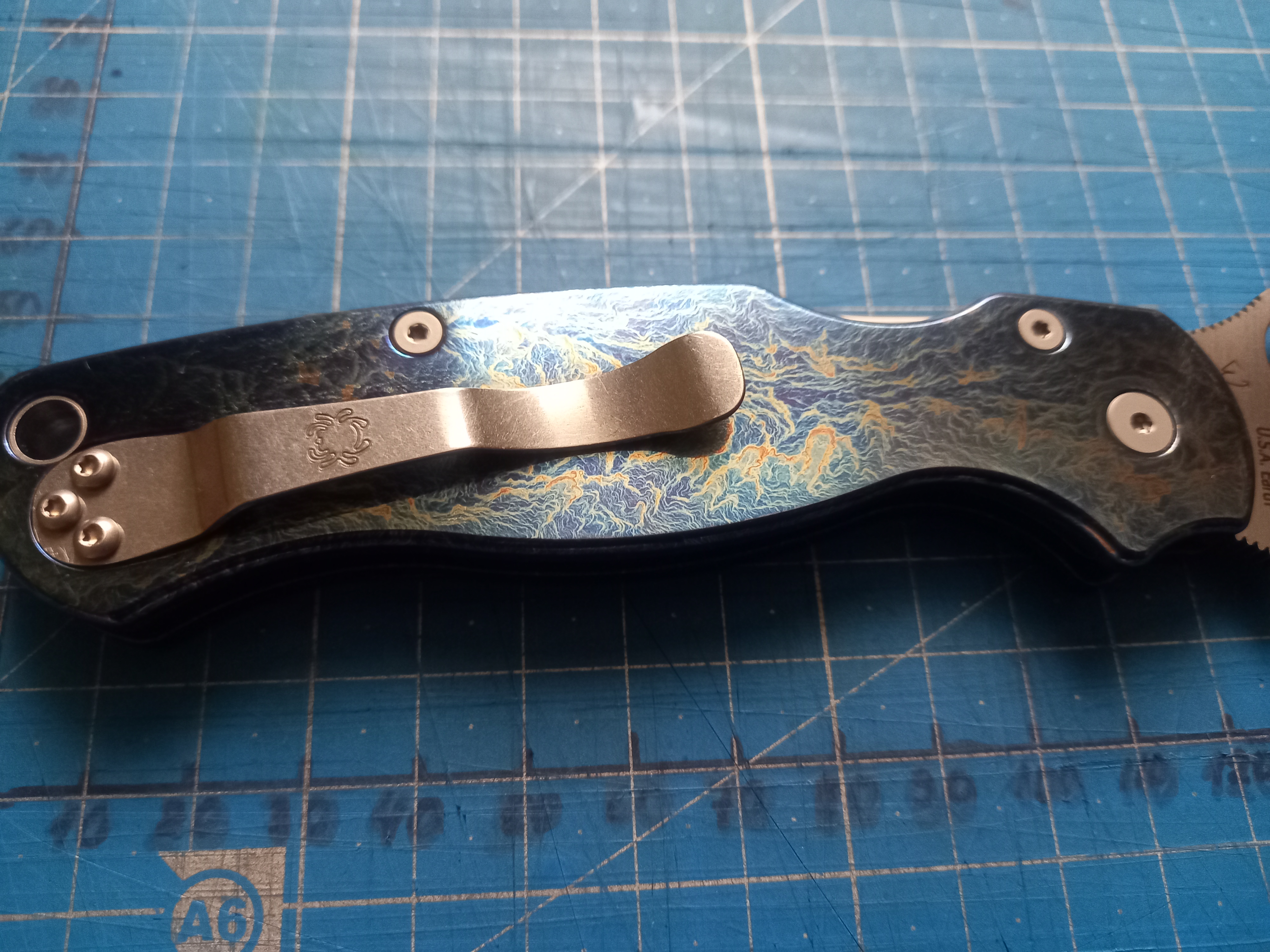 Коли купив ,то ніж чомусь мав ендурівську кліпсу з отвором.Підігнав і поставив звичайну парамілівську кліпсу .До речі ,ніж лиш має одне положення кліпси :для правші tip-up.