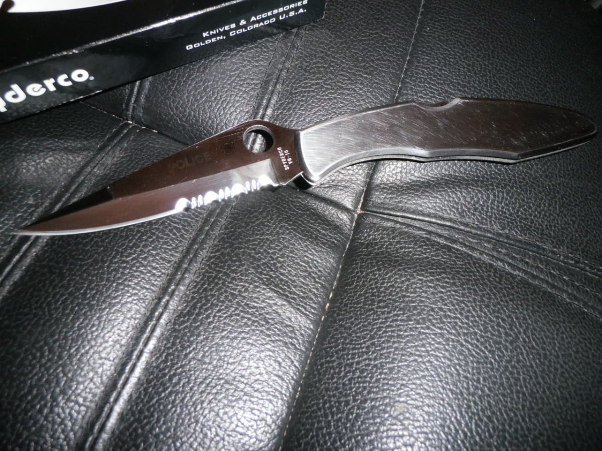 В отличном состоянии цена 2700 Уже более двадцати лет ножи Police являются лидером в десятке самых популярных ножей Spyderco. Причинами тому стали их эффективность, безопасность и функциональность. При разработке универсального ножа для самообороны его создатель неминуемо сталкивается с дилеммой: нож, который хорошо колет — плохо режет, и наоборот. Этот закон вытекает из особенностей геометрии клинка — для придания эффективных колющих свойств необходимо максимально выпрямить режущую кромку, но режущие свойства выше у ножа с формой лезвия, стремящейся к дуге. Обеспечить баланс между этими двумя противоположными свойствами в одном ноже — нелегкая задача, но она была достаточно успешно решена при создании Police. Узкий длинный клинок с фальшлезвием позволяет наносить серьезные колющие удары, а расположение клинка и рукояти под небольшим углом друг к другу (при взгляде на раскрытый нож можно легко заметить, что рукоять и клинок как бы образуют дугу) позволило снизить затрачиваемые усилия при резании. Рукоять из нержавеющей стали придает конструкции высокую прочность https://www.youtube.com/watch?v=BGreBGYoiQA