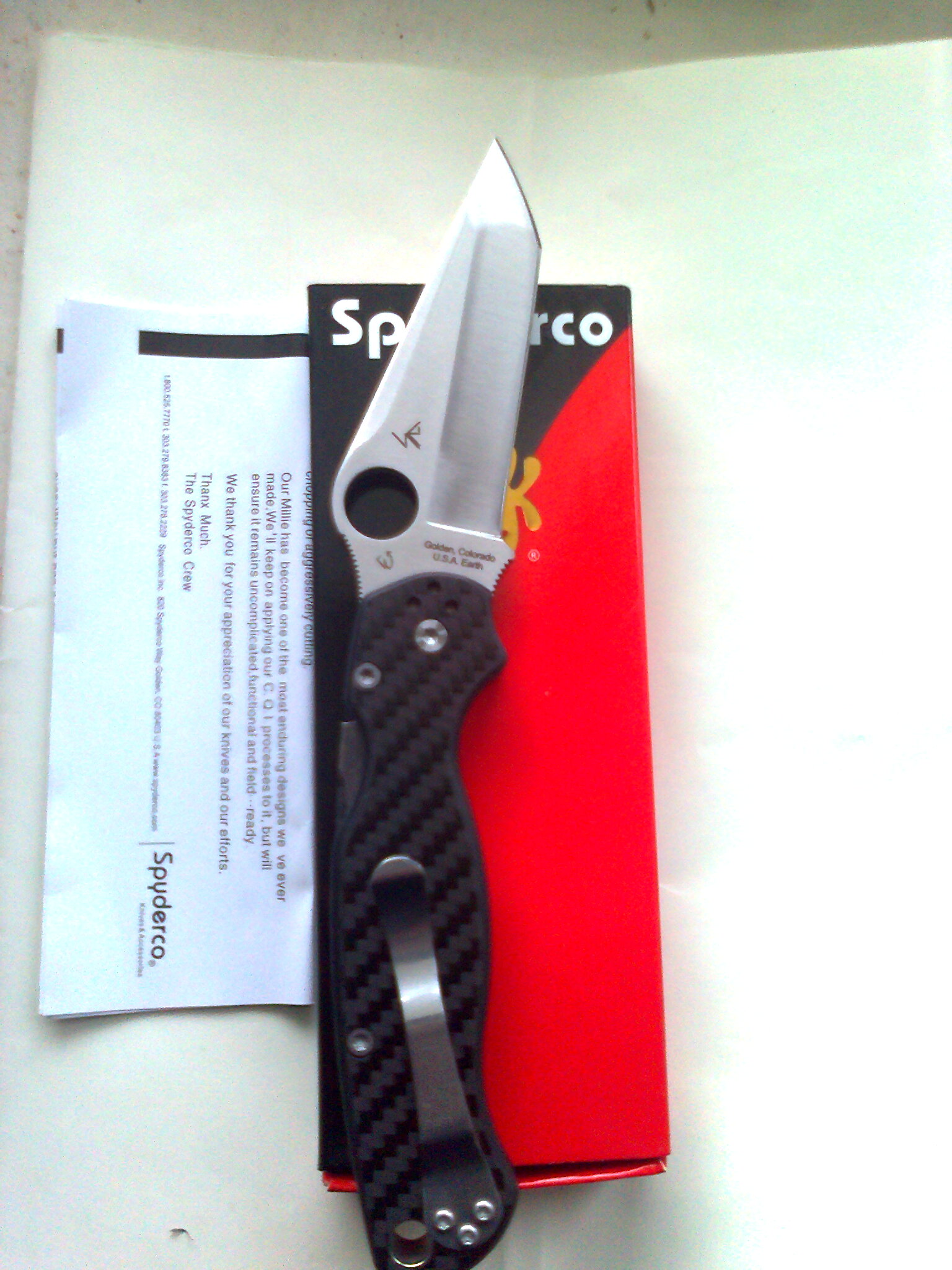 16.Spyderco paramilitary 2 Технические характеристики: Финиш клинка Satin Тип замка Compression Lock Толщина обуха 3.5 мм Длина клинка 89 мм Общая длина 210 мм ручка десерт Нож абсолютно новый.клин по центру.замок в начале.Достался с коробки только для фото. продан