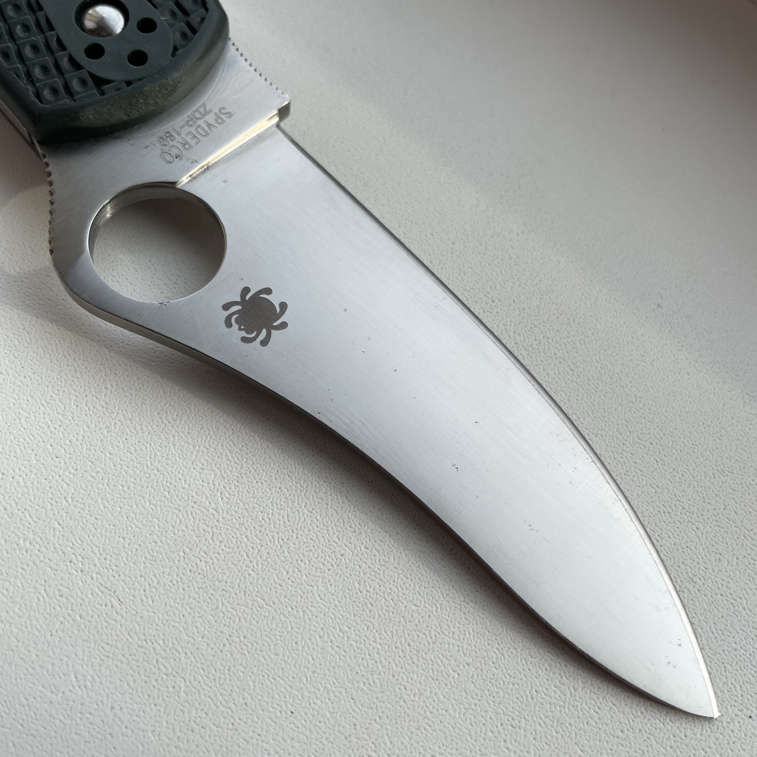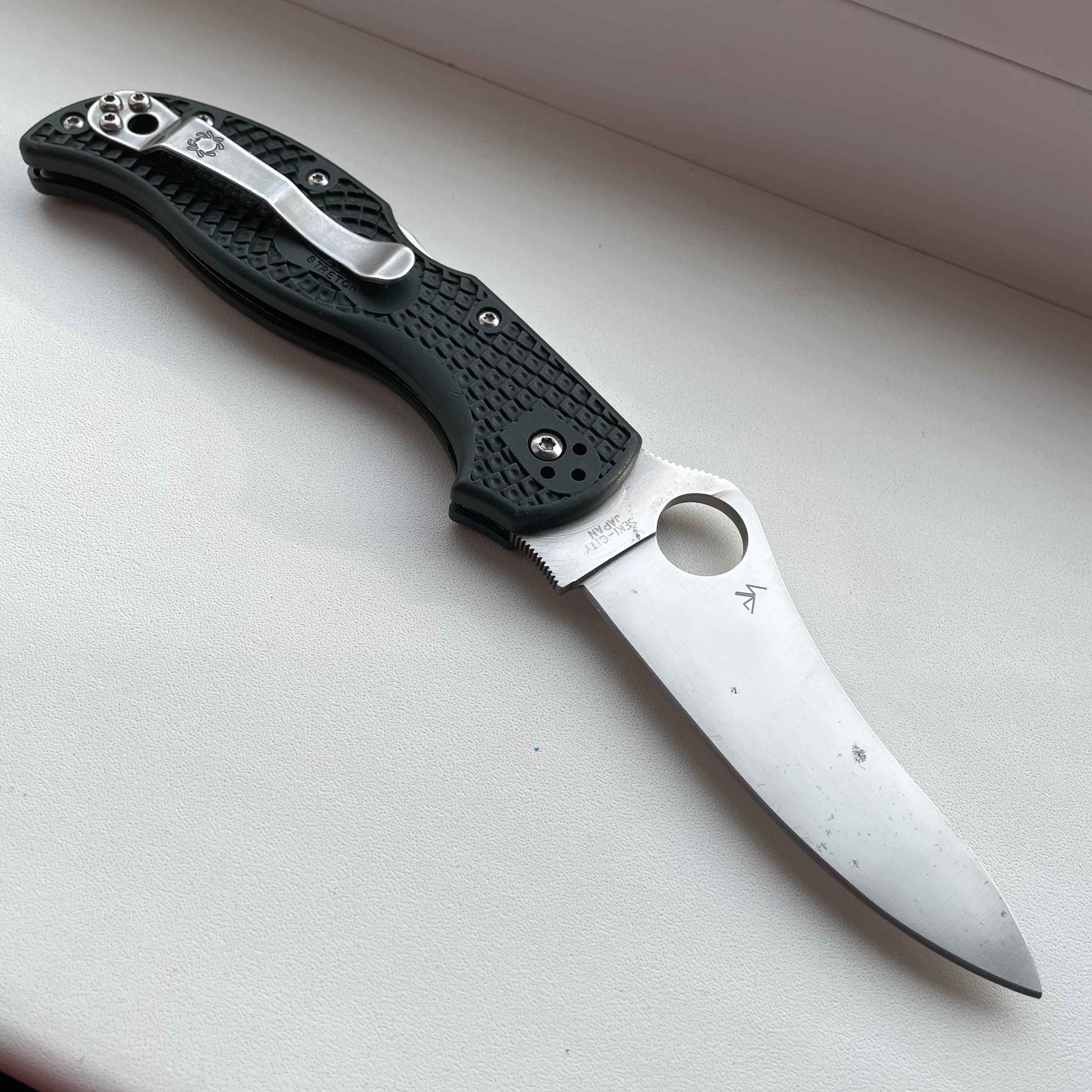 Spyderco Stretch ZDP-189 (б/в, без коробки, задовільний стан) Ціна - 5000грн. ТТХ: Повна довжина - 207мм Довжина клинка - 87 мм Сталь - ZDP-189 Закрита довжина - 120мм Довжина краю - 81мм Вага - 105г Товщина леза - 3мм Матеріал руків'я - FRN #Spyderco #Stretch #ZDP189