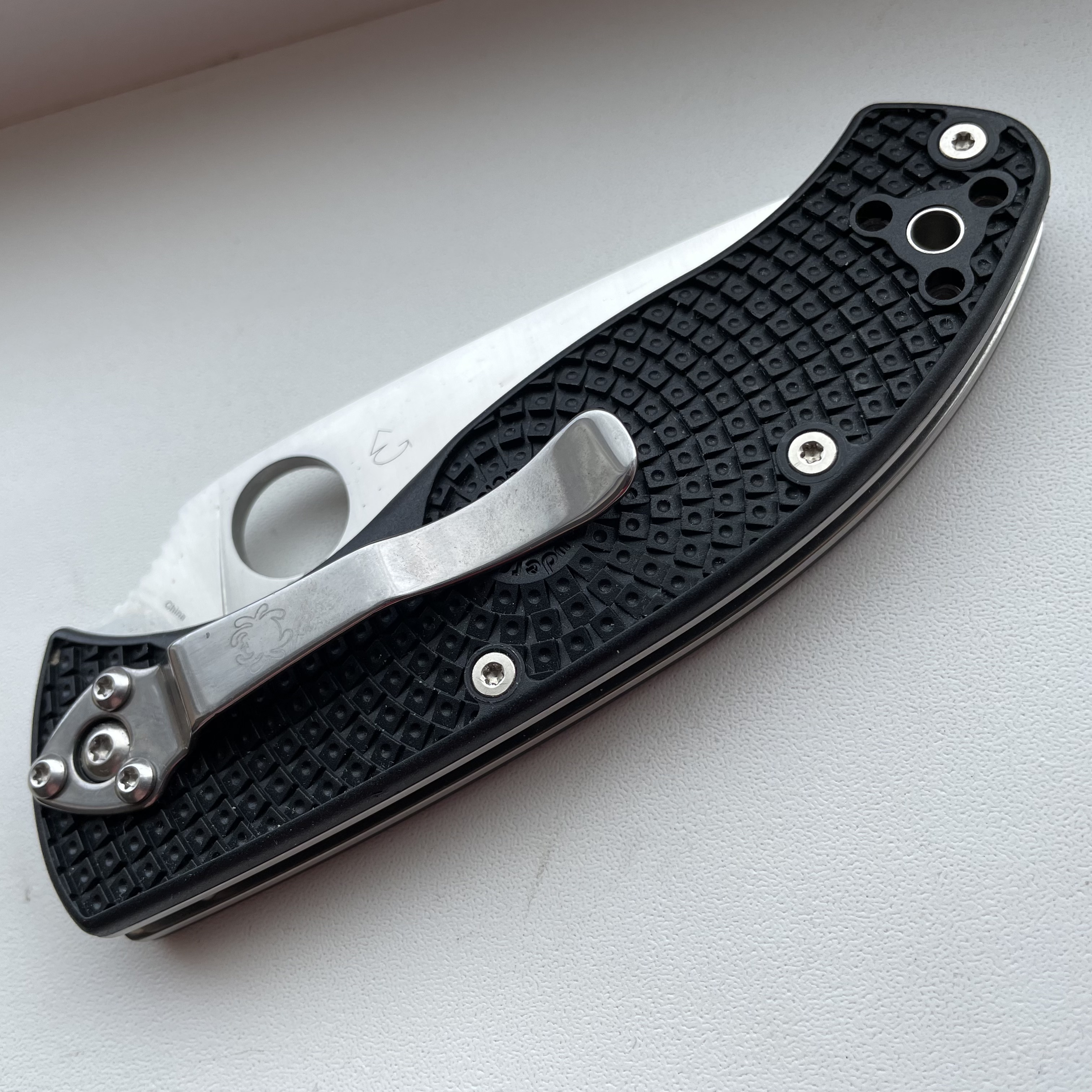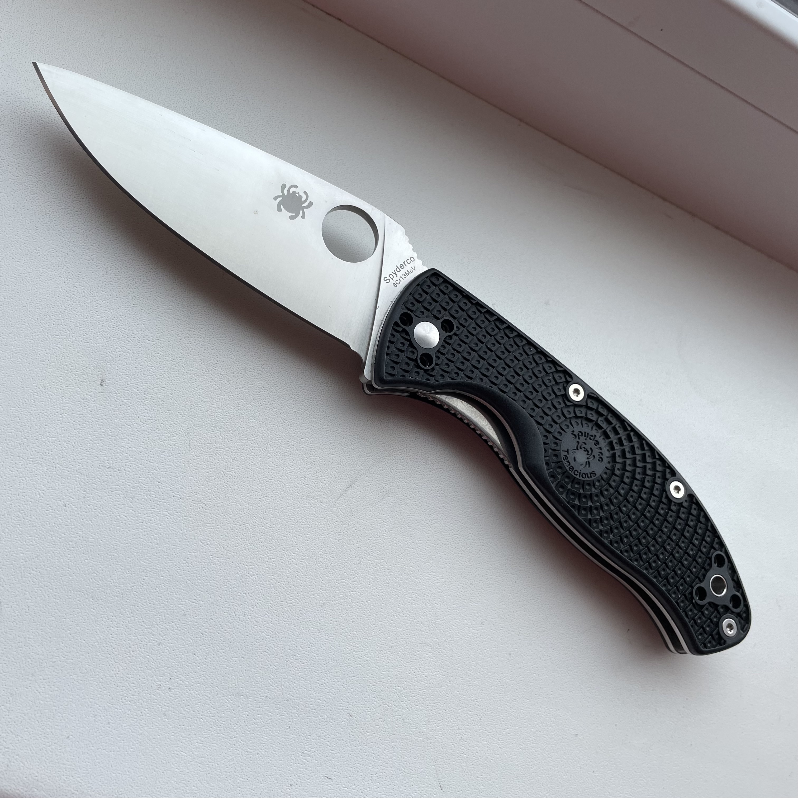 Spyderco Tenacious Lightweight Satin Plain Blade (б/в, без коробки) Ціна - 2500грн. Марка сталі - 8CR13MOV Довжина клинка - 86мм Механізм фіксації - Liner lock Загальна довжина - 197 мм Твердість леза, HRc 58-60 Товщина клинка - 3 мм Матеріал руків'я - FRN Кліпса - Знімна 4-позиційна Вага - 105мм Країна виробник - Китай #Spyderco #Tenacious #Lightweight #8CR13MOV