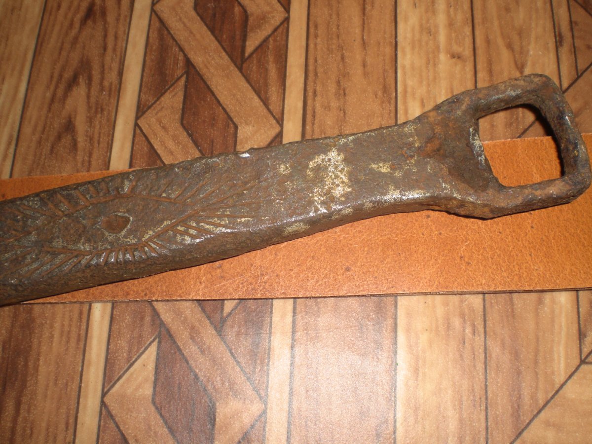Приветствую. Подскажите по средневековому ключику. Чьих будет? Видится некое имя в виде точек. С обратки клеймо чем то похожее на всевидящее око. Из района Белая церковь. Киевская обл.