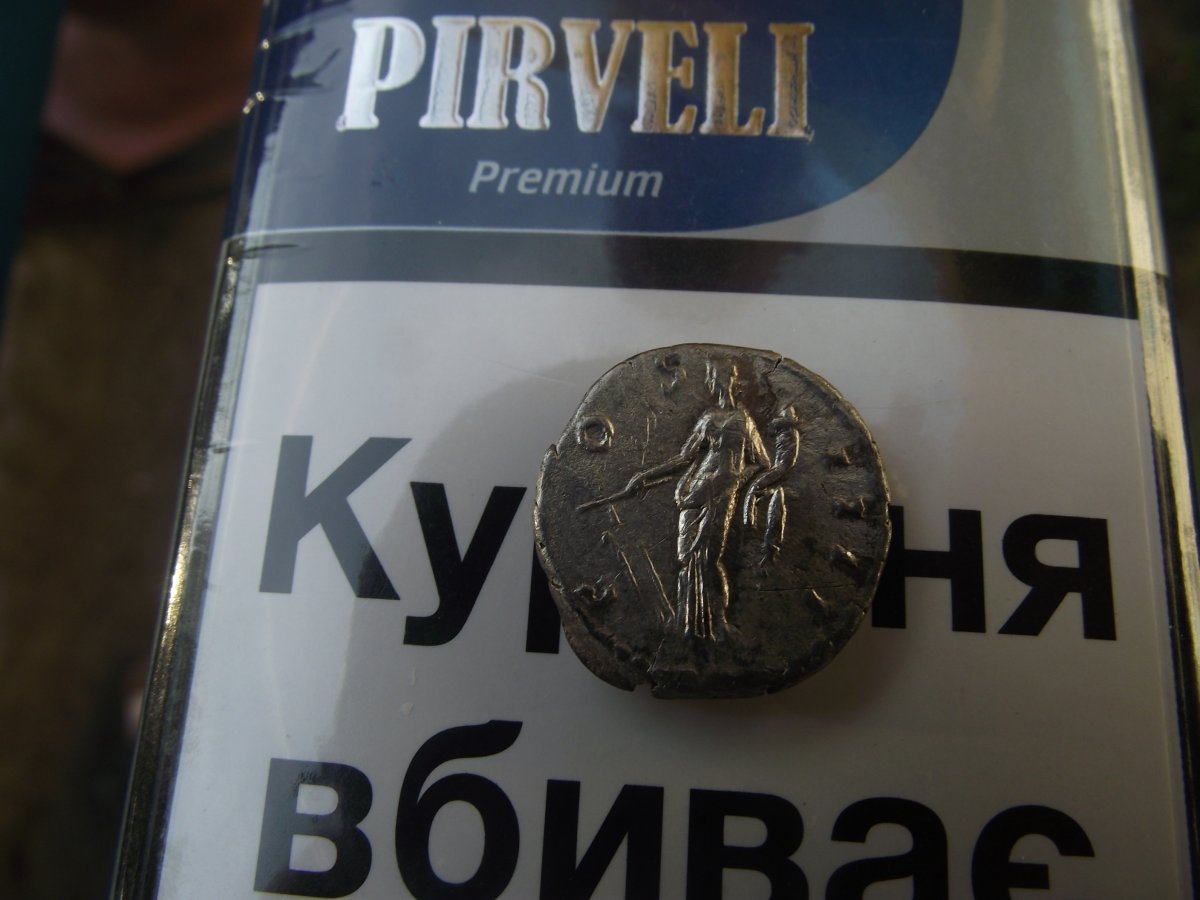 Імператор Веспасіан: 75 AD. IMP CAESAR VESPASIANVS AVG, laureate head right / PON MAX TR P COS VI, Pax seated left holding branch. http://www.wildwinds.com/coins/sear5/s2301.html#RIC_0772 Імператор Траян: 115 AD. IMP TRAIANO AVG GER DAC PM TRP COS VI P P, laureate draped bust right / SPQR OPTIMO PRINCIPI, Trajan's column: statue of Trajan atop column on base, two eagles at base of column. RIC 292, RSC 558. http://www.wildwinds.com/coins/ric/trajan/RIC_0292.jpg Імператор Септимій Север: 193 AD. IMP CAE L SEP SE V PERT AVG Laureate head right / LEG III IT AL Legionary eagle between two standards, TR P COS in exergue. http://www.wildwinds.com/coins/ric/septimius_severus/RIC_0007.jpg Денарій на честь ІІІ італійського легіону Імператор Траян: 103-111 AD. IMP TRAIANO AVG GER DAC P M TR P, laureate head right, draped far shoulder / COS V P P S P Q R OPTIMO PRINC, Victory standing left, naked to hips, holding wreath & palm. http://www.wildwinds.com/coins/sear5/s3129.t.html Імператор Антонін Пій: 149-150 AD. ANTONINVS AVG PIVS PP TR P XIII, laureate head right / COS IIII, Fortuna standing left, holding rudder and cornucopiae. RIC 188; RSC 264. http://www.wildwinds.com/coins/ric/antoninus_pius/RIC_0188.jpg Сказав би, що то імператор Коммод Імператор Траян: IMP CAES NERVA TRAIAN AVG GERM, Laureate head right / PONT MAX TR POT COS II, Concordia seated left, wearing stephane, holding double cornucopia and sacrificing from patera over altar. http://www.wildwinds.com/coins/sear5/s3153.t.html Імператор Адріан: IMP CAESAR TRAIAN HADRIANVS AVG, laureate head right / P M TR P COS III, Hadrian, in military dress, standing left, holding rudder on globe and reversed spear. http://www.wildwinds.com/coins/ric/hadrian/RIC_0110.jpg Пачка цигарок PIRVELI PREMIUM