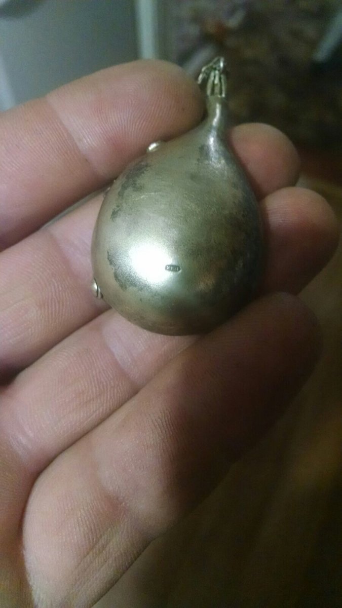 Наверное духи в виде бандуры. Наверное 1964 год (150 лет со дня рождения Т.Г.Шевченко). Вот флакон для духов также из серебра 875. Пробка такая же.
