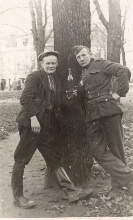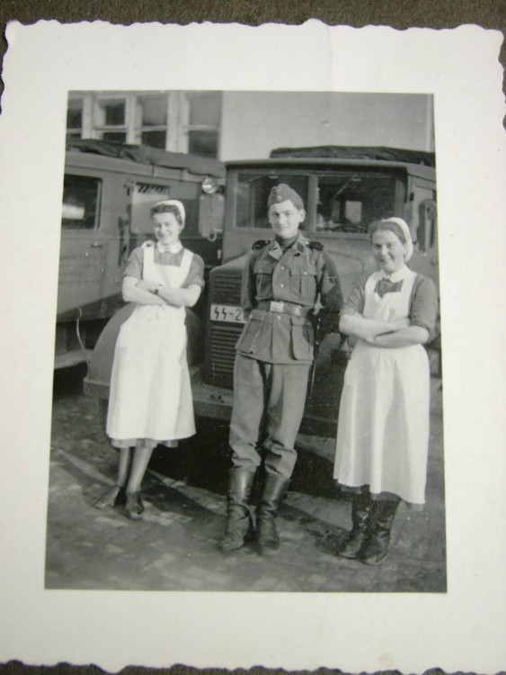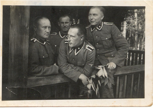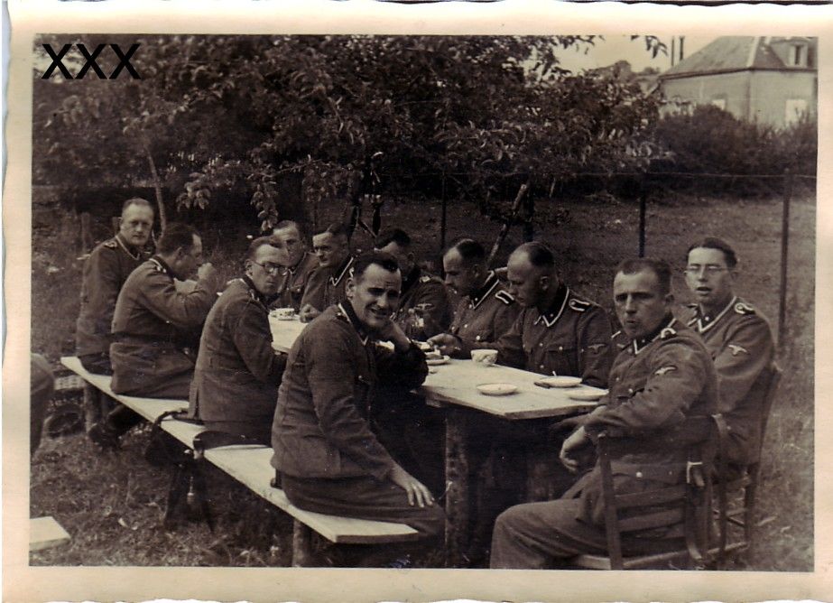 А вы знаете, парень справа (за тем который бриться затеял) по-моему роттенфюрер, и орел на рукаве похоже, и щиток на грузовике ЛАГовский только под наклоном почему то ???