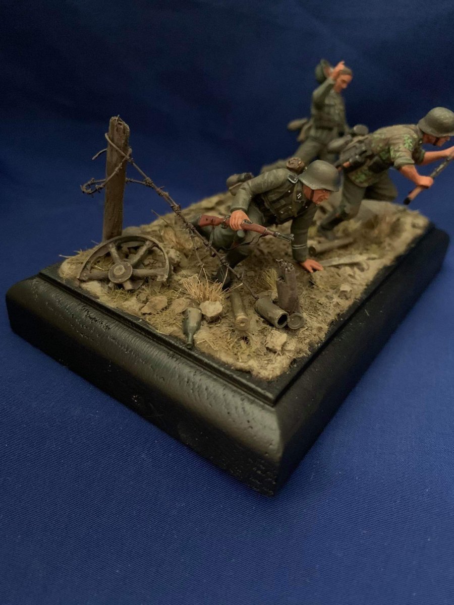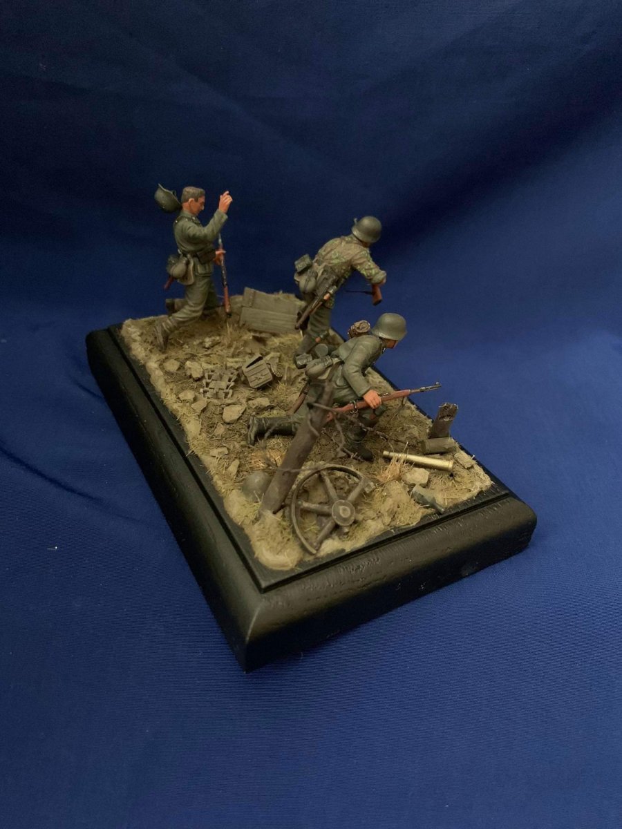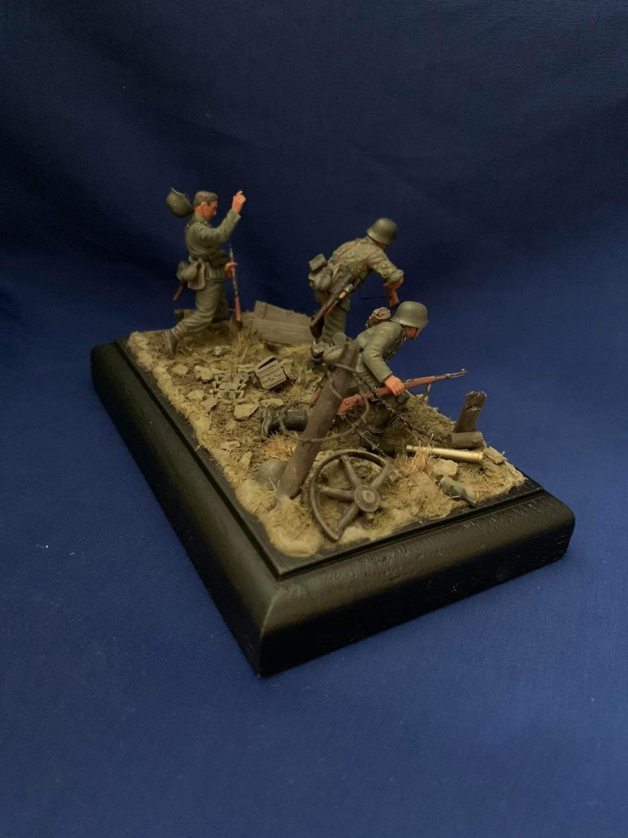 Приветствую.Продам вот такую виньетку.Сюжет:бойцы 11й дивизии сс"Нордоанд" в атаке.масштаб 1/35.Подставка дерево.Отправка только новой почтой.Вопросы все в личку,в теме только резерв.с ув Цена-650грн.