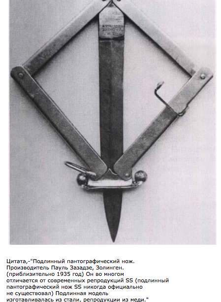 "Подлинный пантографический нож. Производитель Пауль Зазадзе, Золинген..." На бритвенном форуме нашёл историю этого "производителя из Золингена". Вольный перевод статьи с турецкого сайта с эмоциями автора поста на бритвенном форуме : "Прелесть какая, почитал я статейку на турецком. Молодец Павел Задзадзе! Прям герой! Поехал учиться в Стамбул (батя деньжат подбросил), да в 17-м так там и остался (Революция помешала). Ну и попёр у него бизнес. Создал British Steel Mamulatı Халис Store. И у него не было проблем с импортом товара из Германии. Зато с производством были большие проблемы. Продавал всё подряд - бритвы, ножи, ножницы, парикмахерские машинки, газовые плитки. С 30-года вроде как даже начал производство лезвий и косметики. В основном он варил мыло (под маркой ZAZA), и производил всякие тальки и т.п. За что наполучал медалей на выставке в Германии в 1930-м году. Бритвы, ножницы и машинки для волос он импортировал из Германии, Англии и Швеции, позднее ещё из Франции. В общем и целом он был большой молодец. В 1960-м его в Ватикане удостоили великого звания - Komandatörü . А 1989 году этот рыцарь скончался. В общем так я понял этот текст. Резюме: В Турции никогда опасные бритвы не производились, а представленная на фото бритва - C. Friedrch Ern, сделанная для Павла Задзадзе по его заказу." Турецкие ятаганы и прочие орлы, терзающие змей (видимо нанесённые позже) на бритвенные лезвиях, прилагаются.