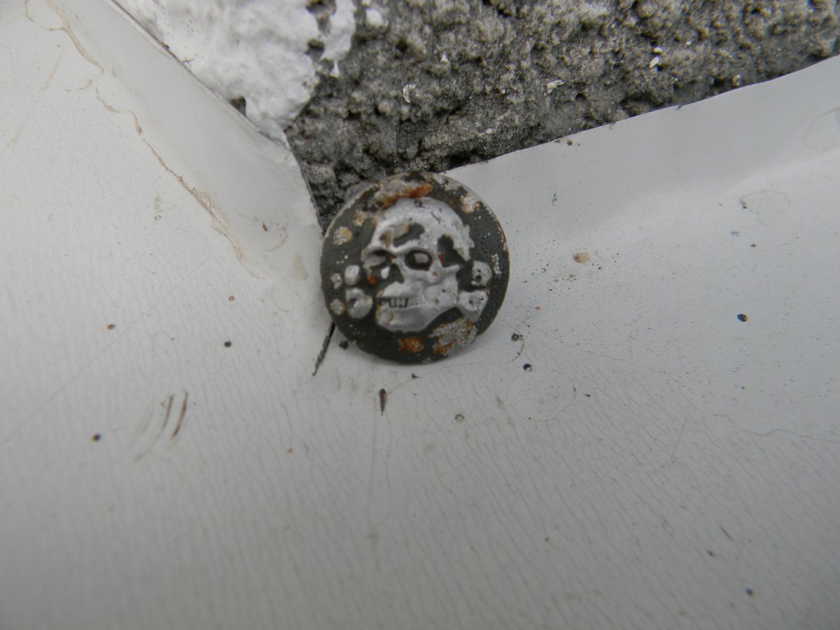 Почистите обратку, ржавчина там должна легко уйти.И фото лицевой части над черепом, там видится вмятина вроде.