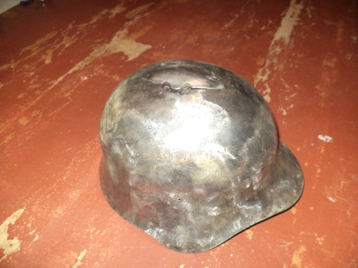Всем добра камрады.Прошу оценить реставрированый шлем.Сам по себе шлем нечастый но ещё и на козырьке едва заметная волна от заводского штампа.Размер 3,на мою голову 57р болтается примерно на 58-59.На правом ухе остатки клейма.