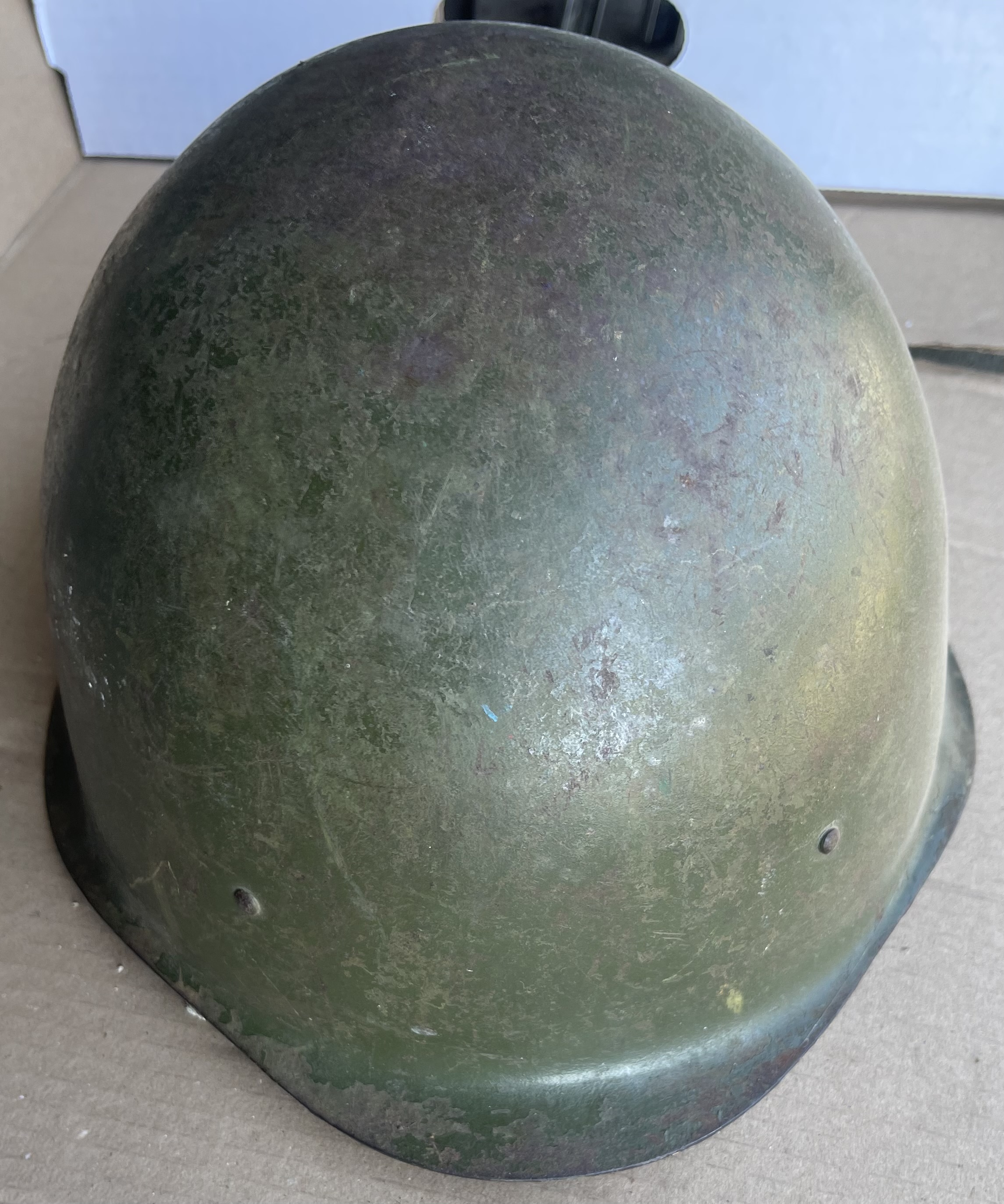Що до " рідкісного заводського" то бачив їх в кількості, упакованих в марковані ящики оббиті металевою стрічкою (маркування не пам"ятаю). Зірка на козерку (друге фото) свідчить про те, що шолом "воєнного" випуску...