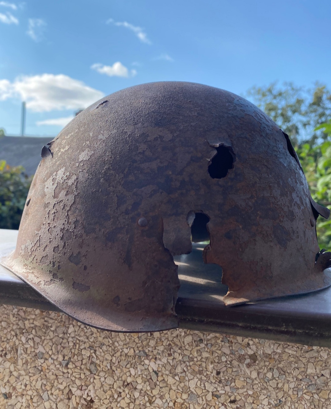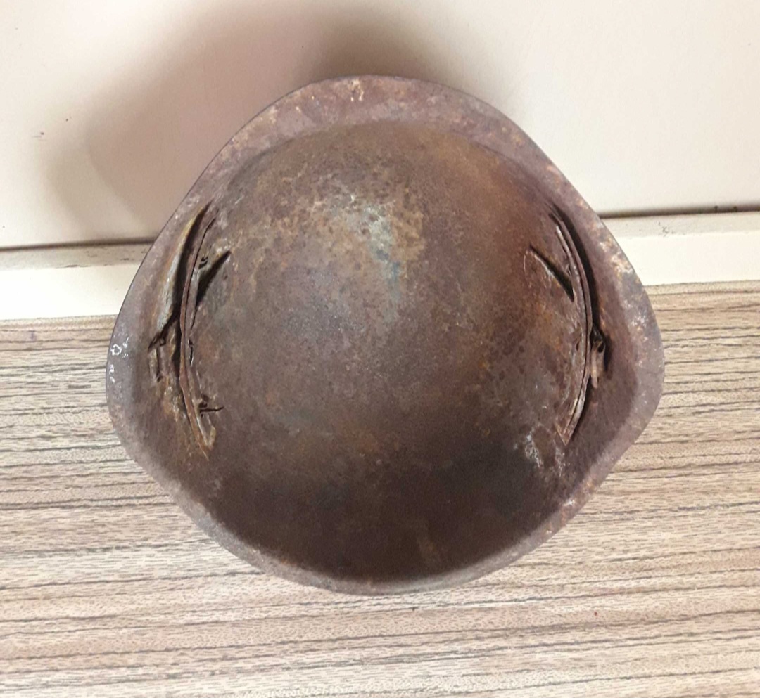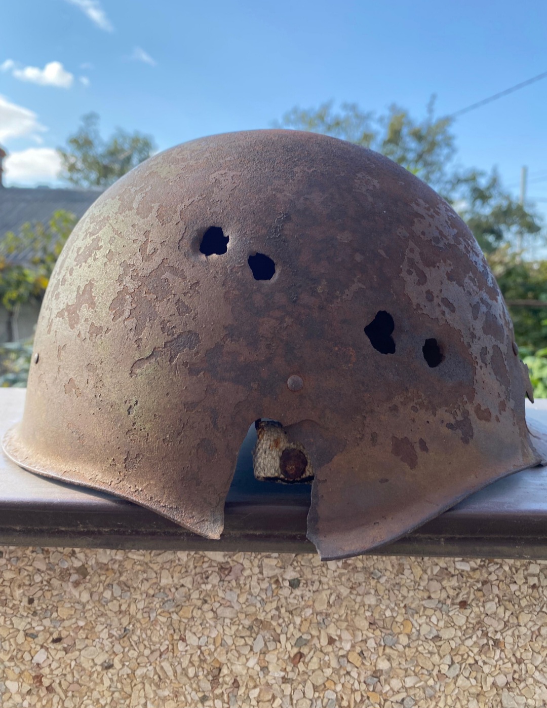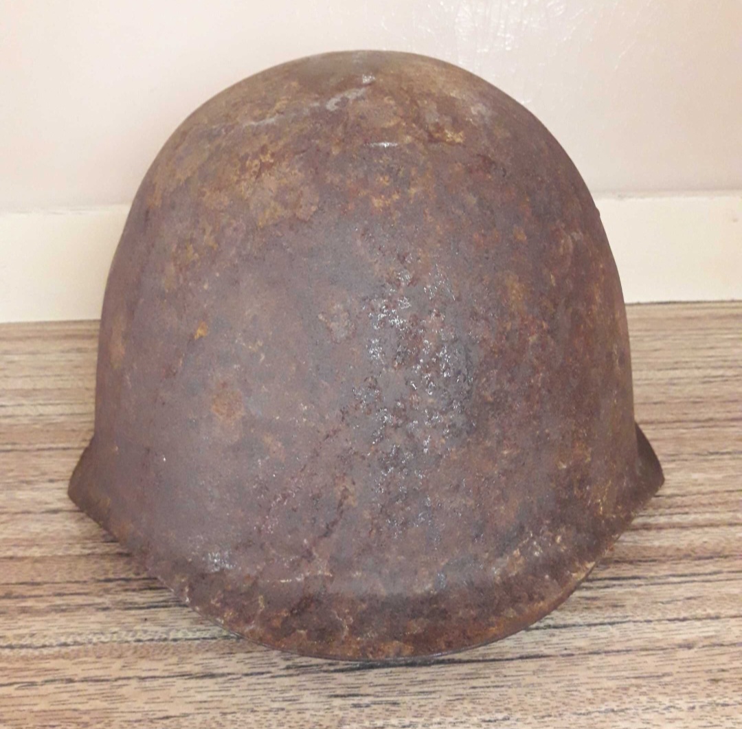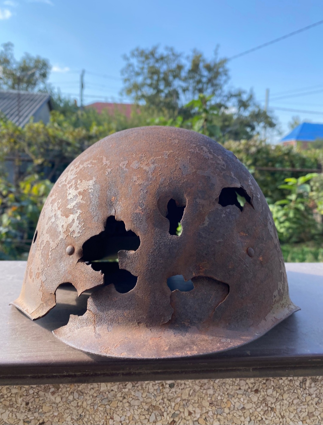 Вот поделюсь, взял ещё такой СШ-39, был выкопан с глубины ~50см на позициях по обороне Одессы, по нему вопросов нет. На вид неплохой, может под ржавчиной даже краска будет. Хочу потом сделать небольшую композицию из 2х касок, если шестиклёпка военной окажется конечно, "оборона и освобождение города" думаю будет не плохо.