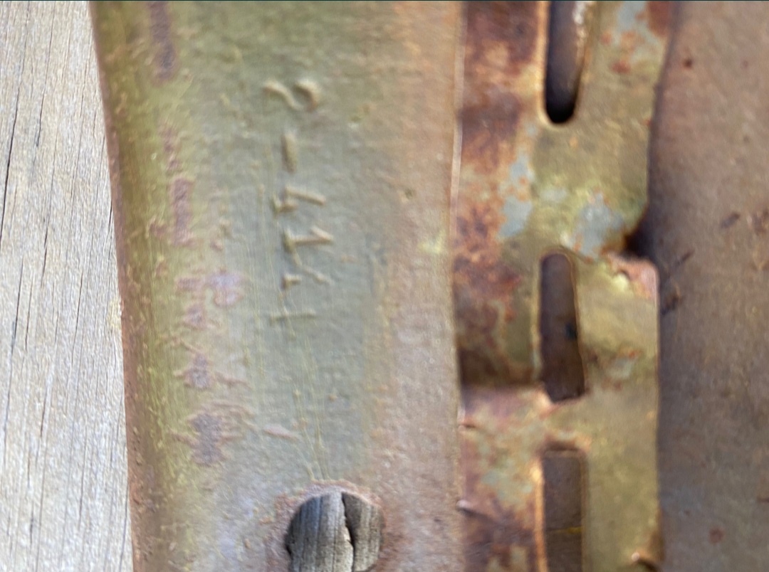 Имею возможность продолжить тему! Фото заднего козырька. Так же 1 заклёпка отличается. Краска в 1 слой. Чернильный штамп не сохранился, есть какие-то очень слабые очертания но не более, прошлый владелец попортил...