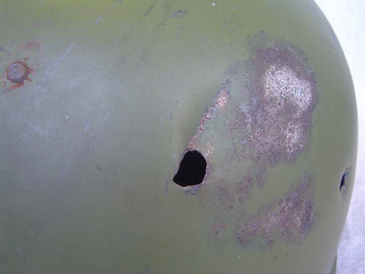 Добрый Похоже на то, что каска была сделана в военный период Кто и когда над ней поиздевался - на совести продавца С уважением
