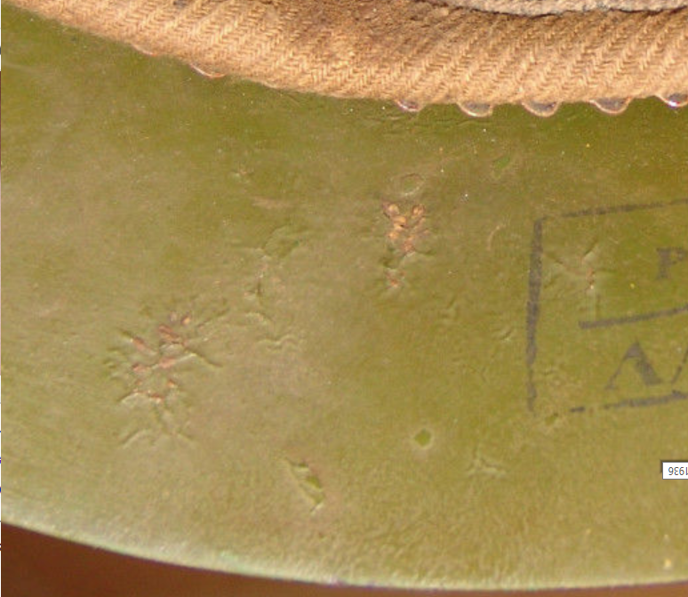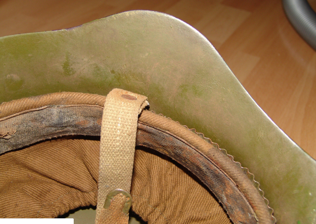 Ну вот мне, лично, не нравится предмет, если рассматривать как полностью родной. Сужу, потому как имею хороший СШ-36 без коррозии и с родным подшлемником. Да и без родного горшка под носом, видно, что кто-то очень старался выдать за полный оригинал...либо просто красиво состарить. А как этот предмет позиционирует владелец?
