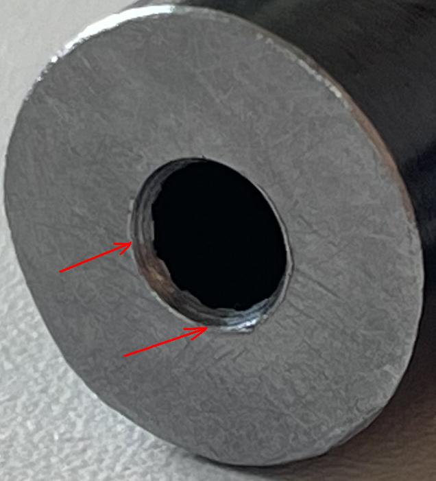 Таку Вашу "фаску" потрібно правити. Обов'язково прибрати задирку на торці ствола, інакше буде зрив кулі з лінії осі ствола в будь-який бік (або по вертикалі) в залежності від розташування задирки: Фаска.jpeg