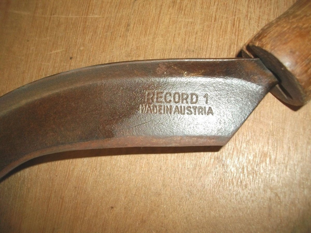 Камерады спасибо вам за интерес к этой теме , сам такой... Люблю выгрызть инфу по предмету. Вот вам ещё один экземпляр - коса с такой же рукоятью и точно таким же загибом на выходе из рукояти , клеймо - Reсord 1 и неразборчевое клеймо...