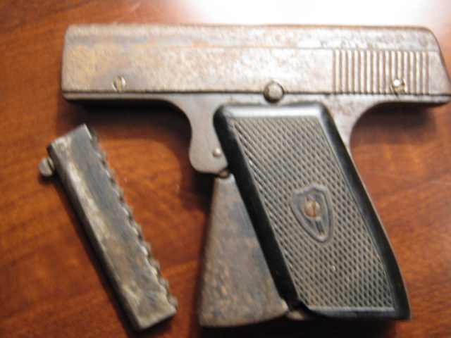 Где то валяется и у меня такой. Выпуск 1960г. 8 зарядный, жевело. У вашем стартаке не хватает флажка, служит типо предохранителя, а также чтобы вынуть магазин.