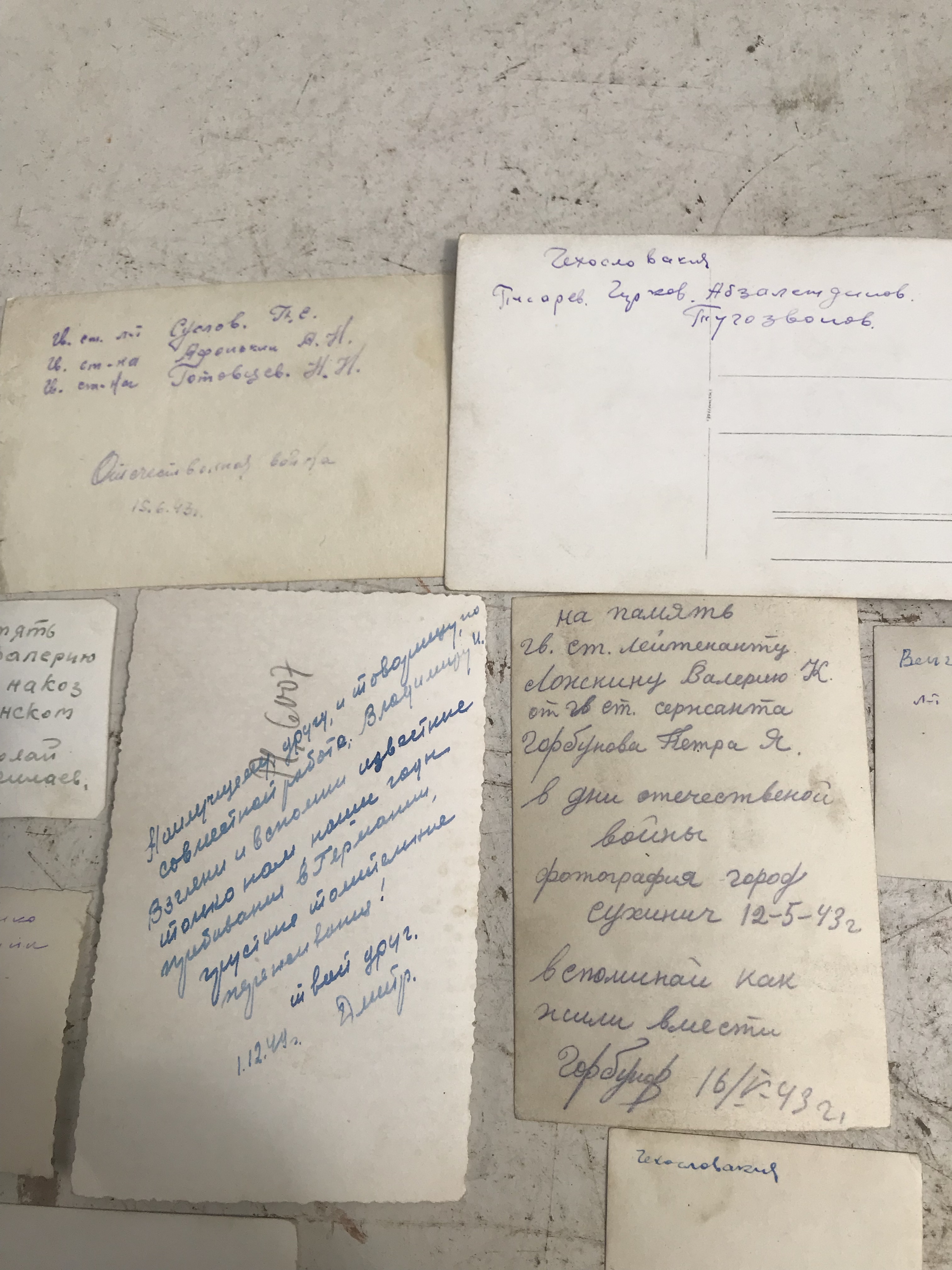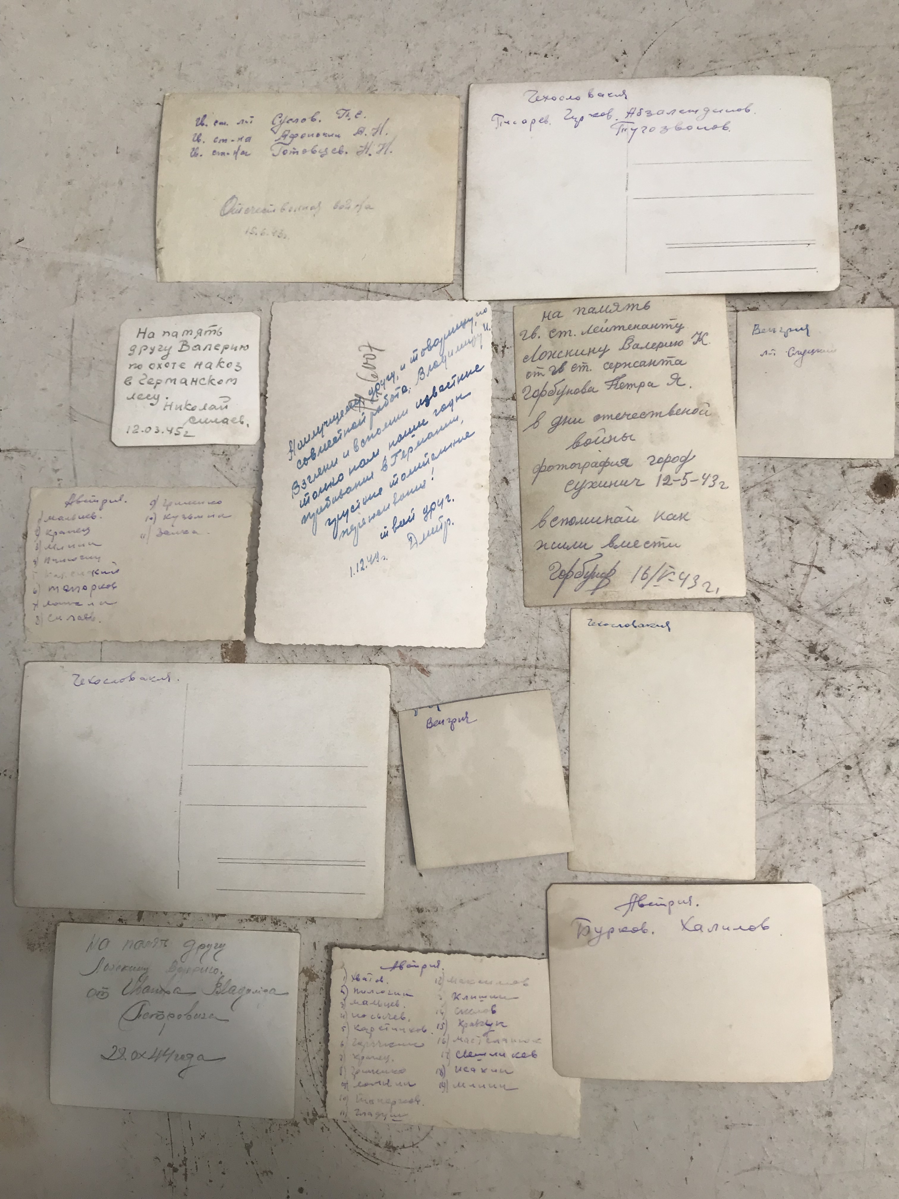 По 0,5€ за штуку. Послевойна. Фотографии я бы оценил дороже. Русские военные фото встречаются много реже немецких. У каждого немецкого солдата был фотоаппарат и альбом с фотографиями. У русских солдат фотоаппаратов не было. Да и всё было засекречено: низя фотографировать!