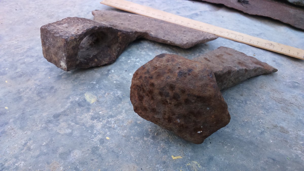 Добрый вечер! Фото1 - вверху самоделка ИМХО "топорная" из большей частью обуха топора и приваренной к нему рабочей "лопасти" типа потёса. Возможно таки от бывшего потёса или подходящего куска железа. Что-то напоминает... Лемех?