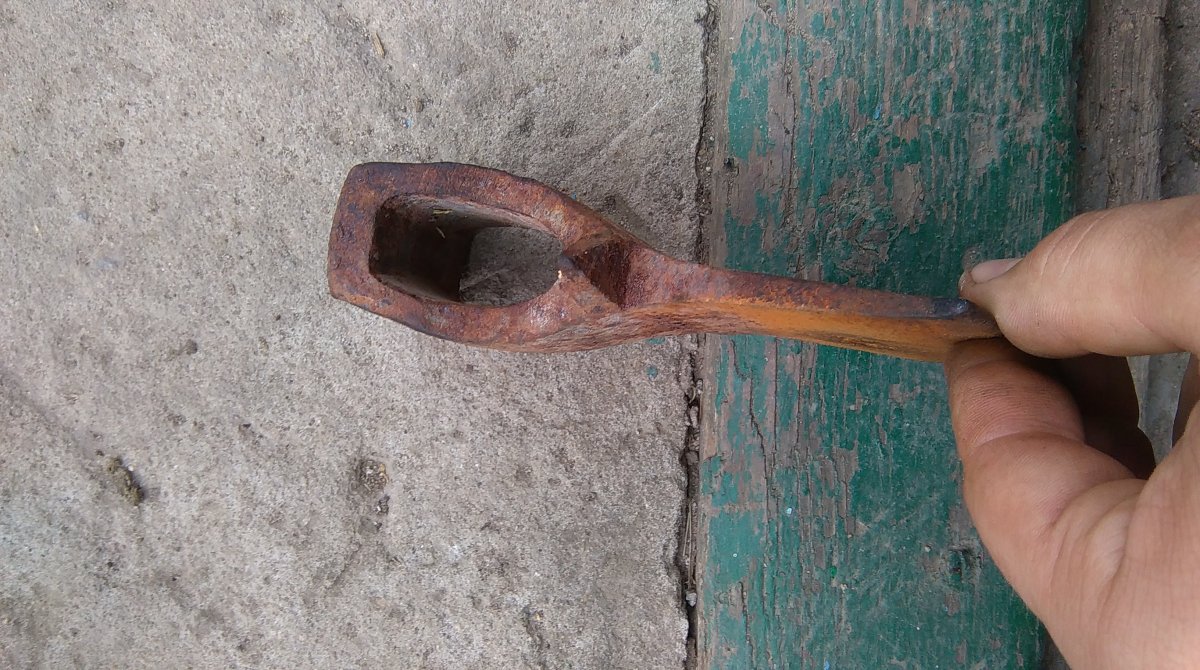 Доброго ранку.Моя думка,що це ковальське зубило.Розвинений та розклепаний обух від потужних ударів молотом; отвір провушини невеликий, для тонкої ручки ,тільки підтримувати зубило у потрібному місці.З пов.
