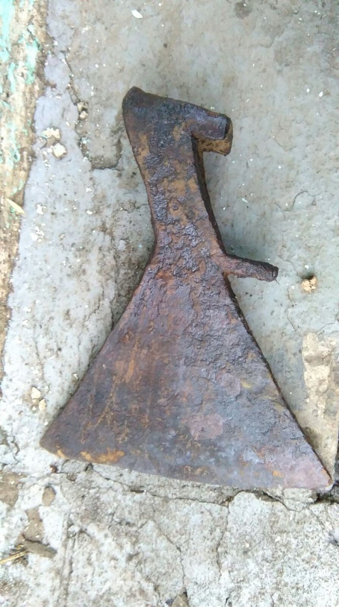 Добрый вечер.Подскажите по топору,коп,слегка почищен,клеймо по всей видимости ушло,вес-1,075 гр.Спасибо.С ув.