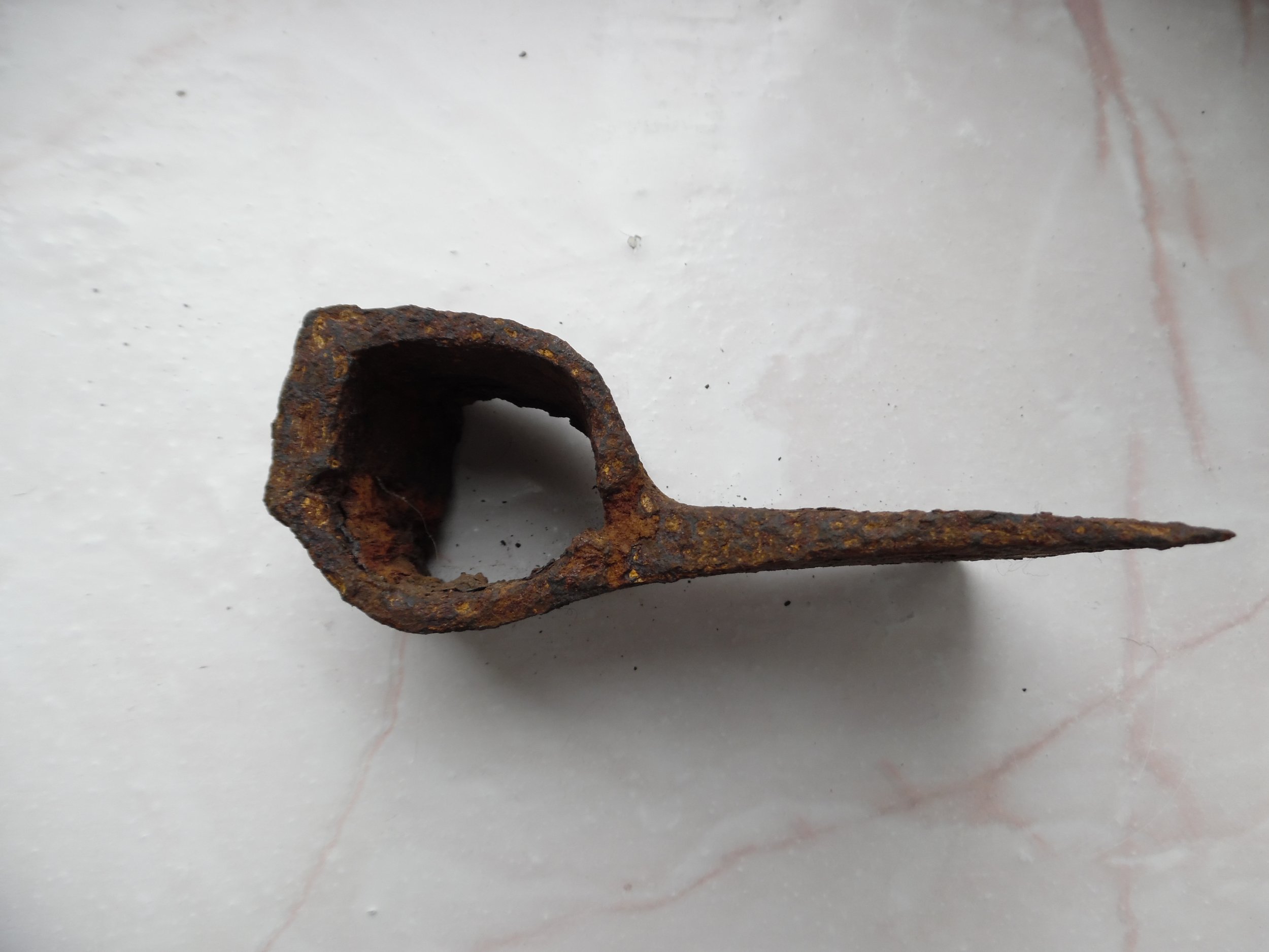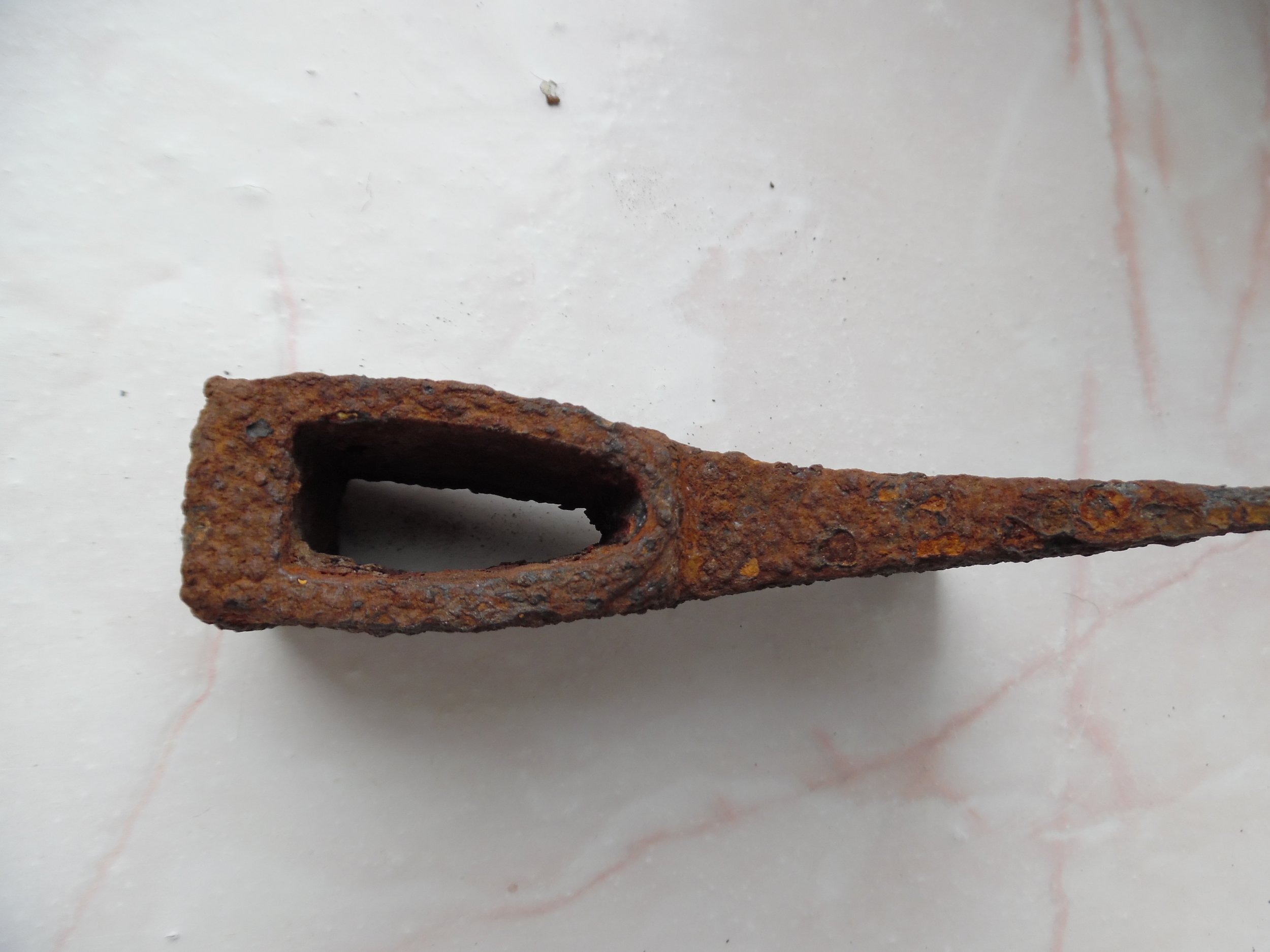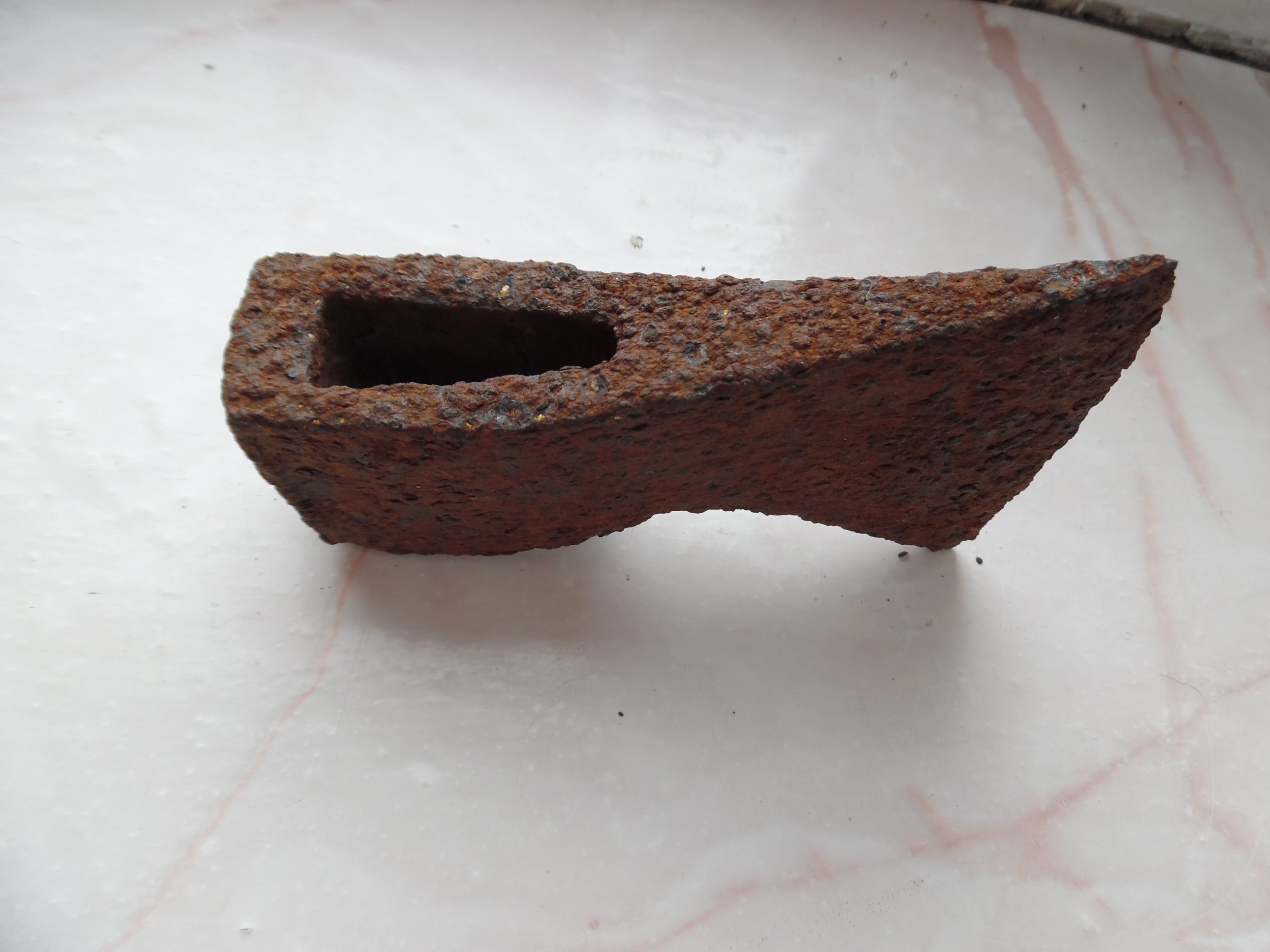 Всім доброго. Є така сокирка вагою 550 гр. , особливістю якою є овальний отвір, молотообразний обух. Що це може бути Київська Русь чи щось інше? З пов.