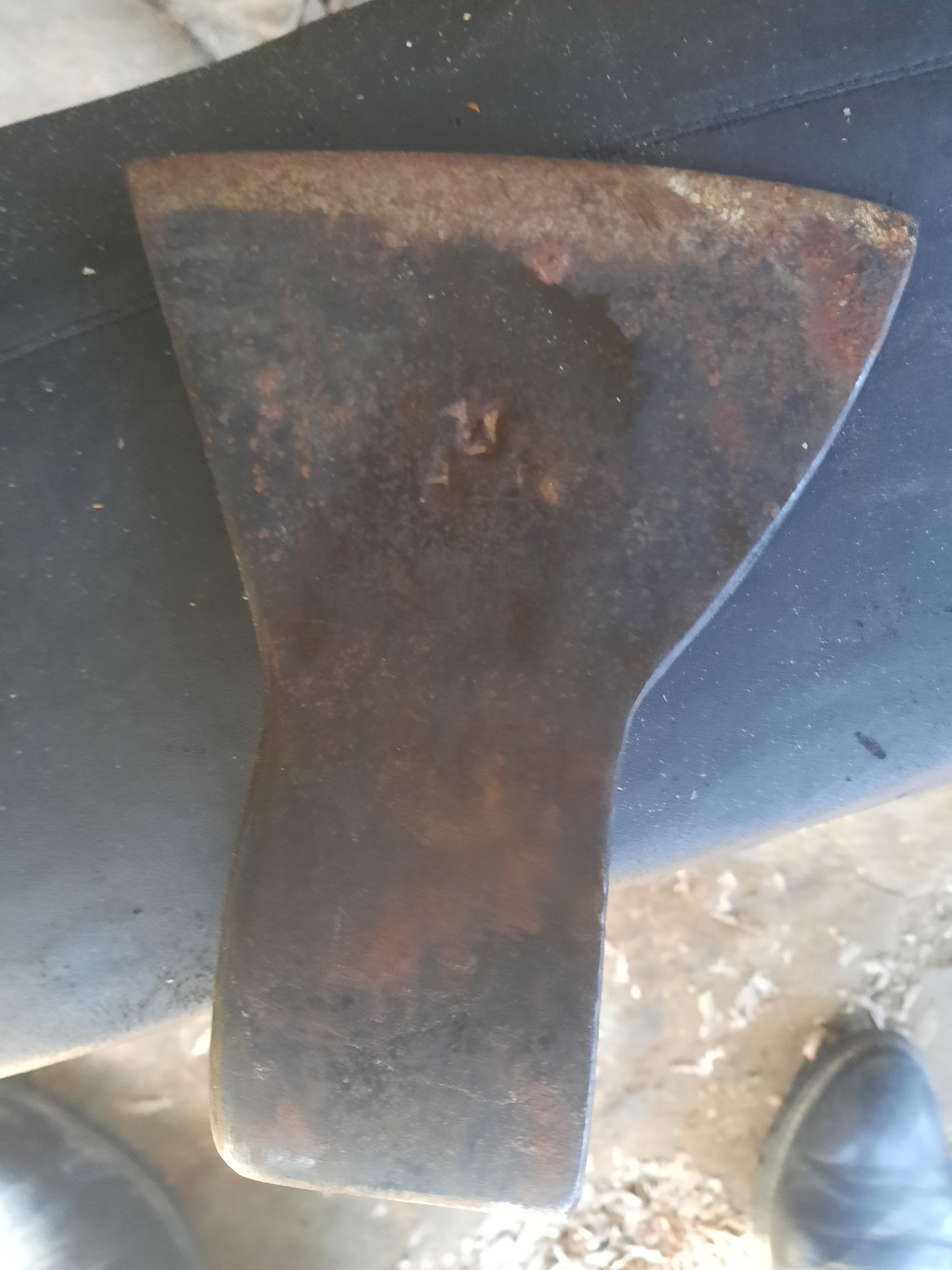 В тому, що ковальського виробництва сумнівів немає. Питання в тому чи він наскільки сильно сточений, чи таке коротке лезо було заплановане майстром? Можливо при чистці буде видно зону закалки ... Зламати просто - удар молотом, або обухом іншої сокири.
