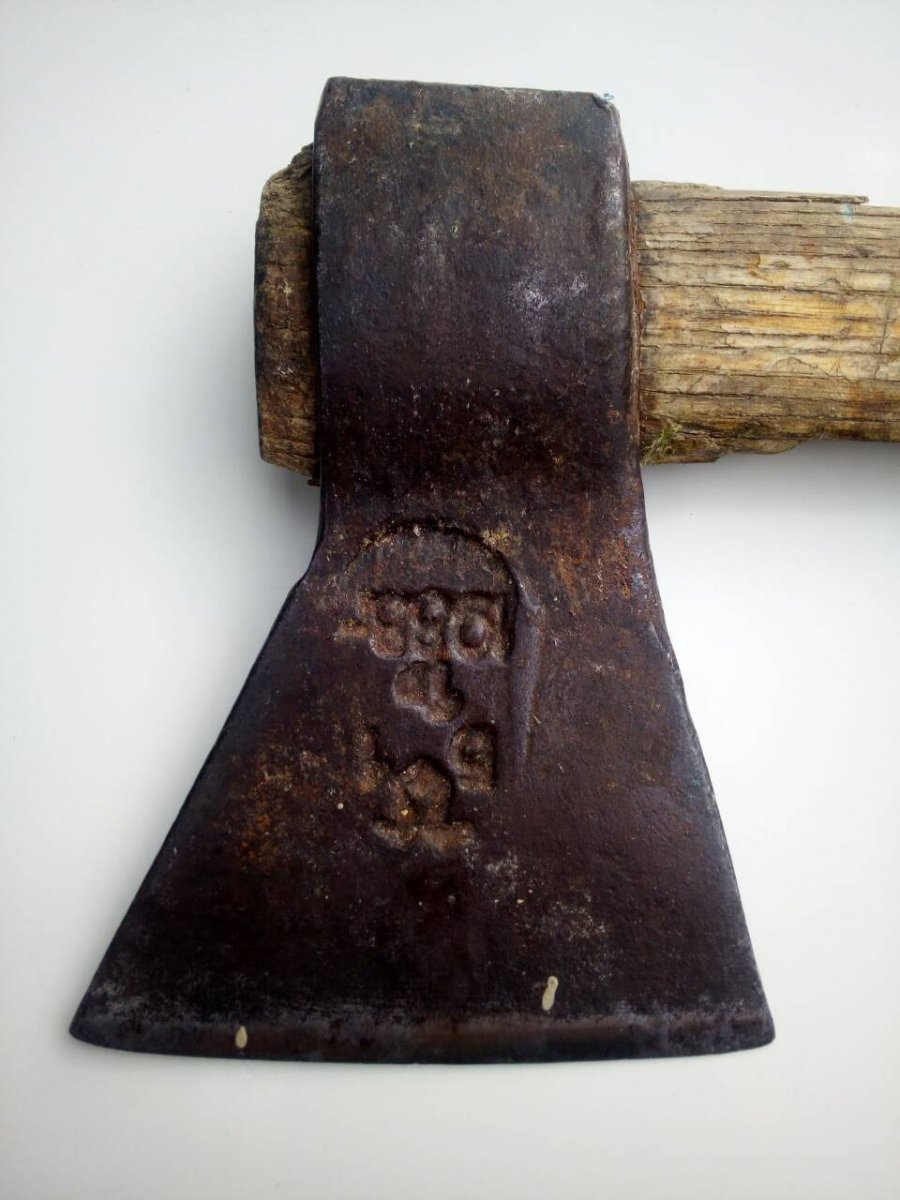 Вот такой топорик из советского прошлого нарисовался у знакомого Вити.До сих пор верно служит на хозяйстве,совсем не лишний инструмент в лесных походах. Кто подскажет:чьих будет?С ув.