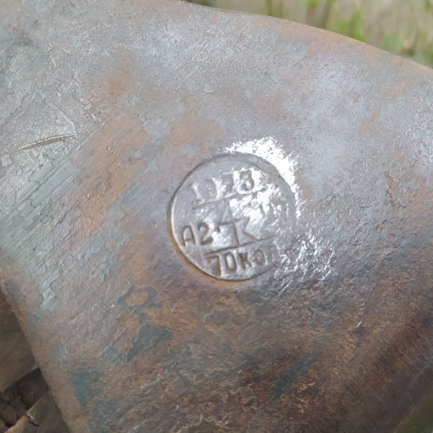 Вітаю.Руські сайти з каталогами совіцьких топорів поблоковані,але й так видно-1973(рік виготовлення),А2-типорозмір,далі клеймо заводу,70коп.-ціна господарського інструменту.Якщо десь помилився,то поправляйте.