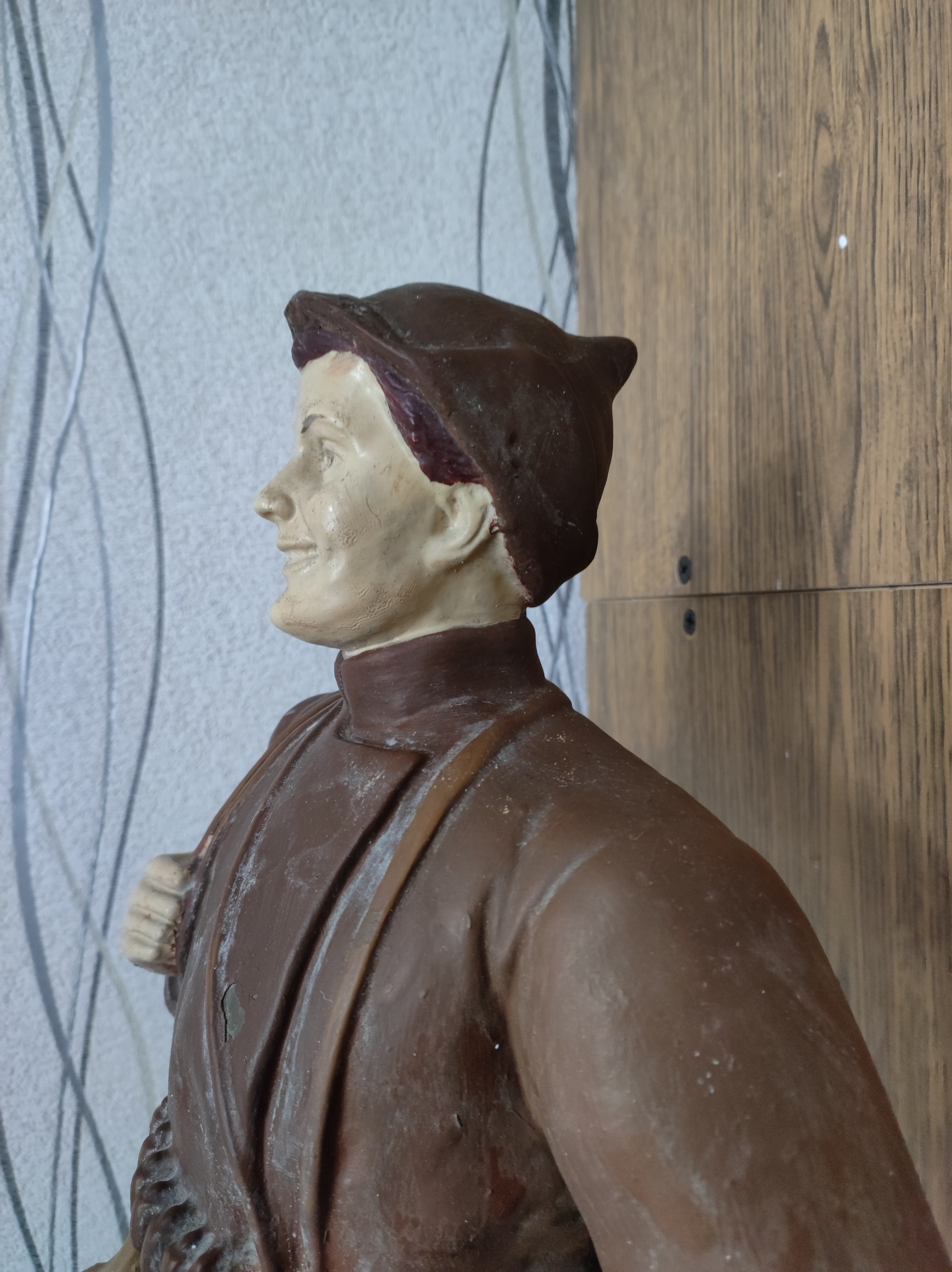 Всем привет. Досталась по наследству вот такая статуя скорее всего 30-40-х годов. Высота 65 см. Подскажите, может кто видел такую, знает, где почитать про нее информацию. Сзади на подставке есть плохочитаемая надпись (фото). Вроде какой-то завод Укрвяжпром или что-то подобное. Тираж 840. Остальные слова непонятны. Заранее спасибо за помощь.
