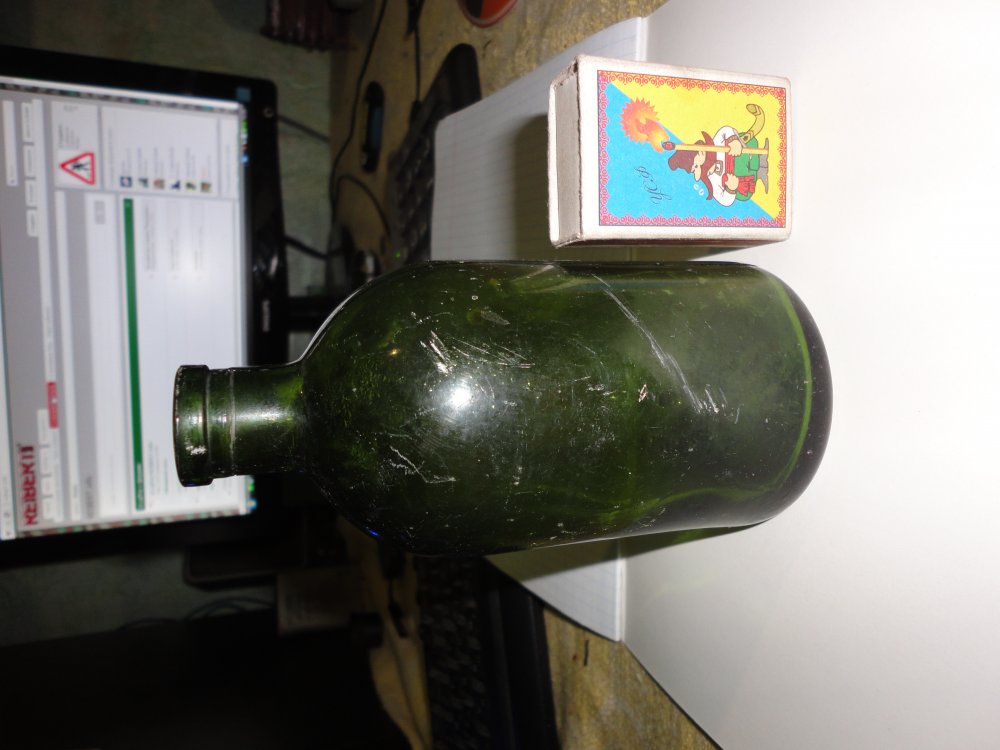 Доброго времени суток.При проведении строительных робот(копали траншею под фундамент) была найдена бутылочка.Глубина примерно пол метра.Подскажите по примерному периоду.Сопутка керамические осколки от посуды. Клеймо;"02 ОДЕСА". За-раннее спасибо.