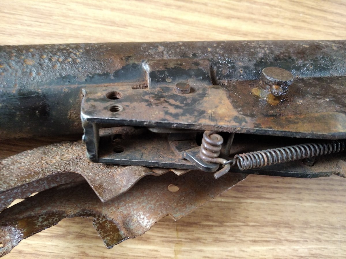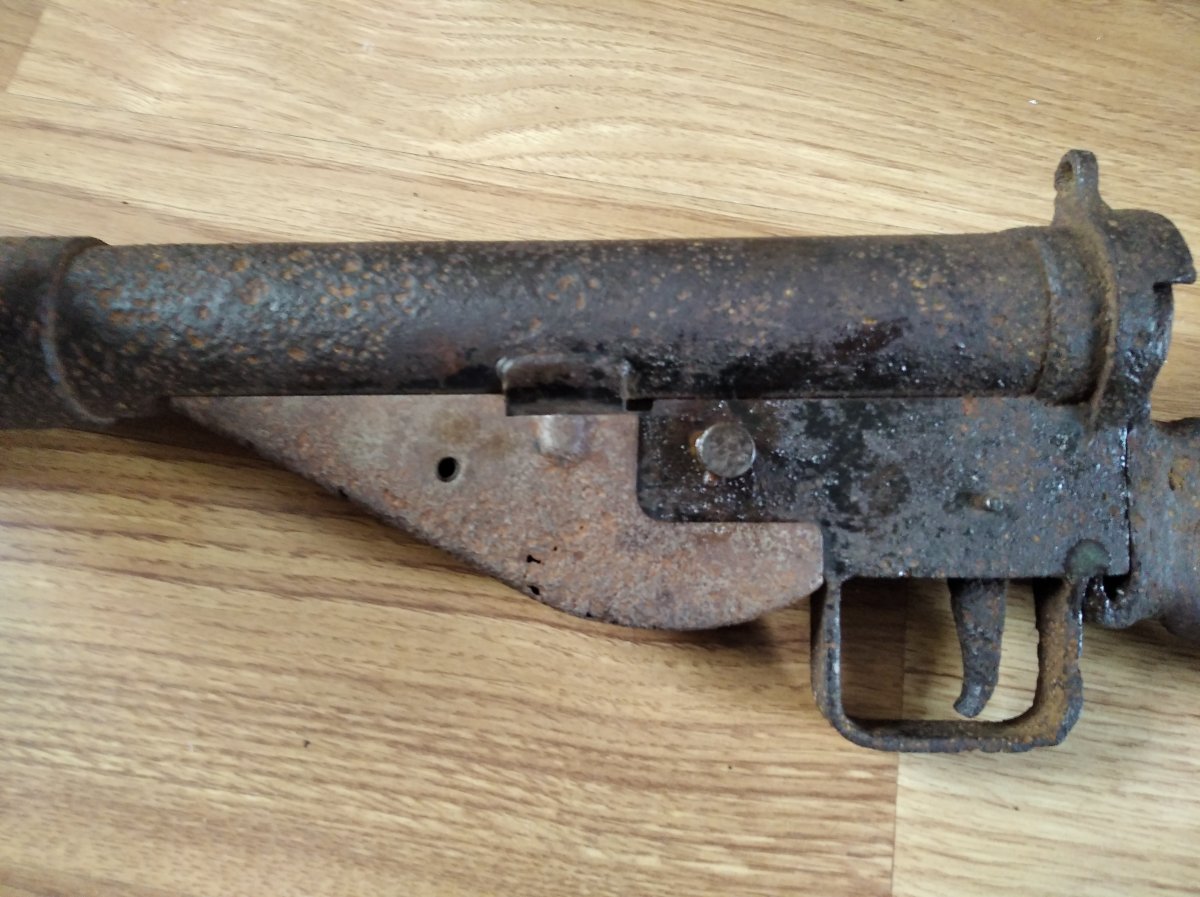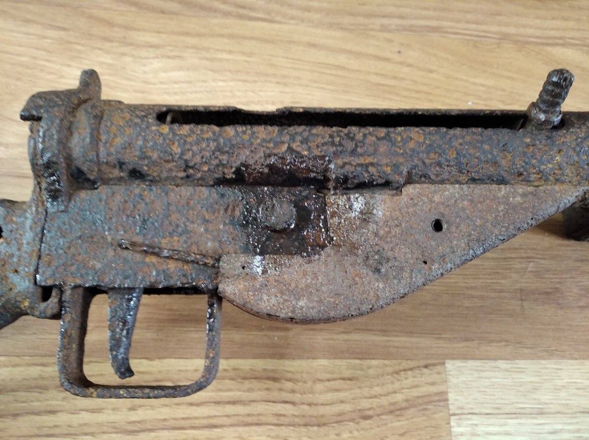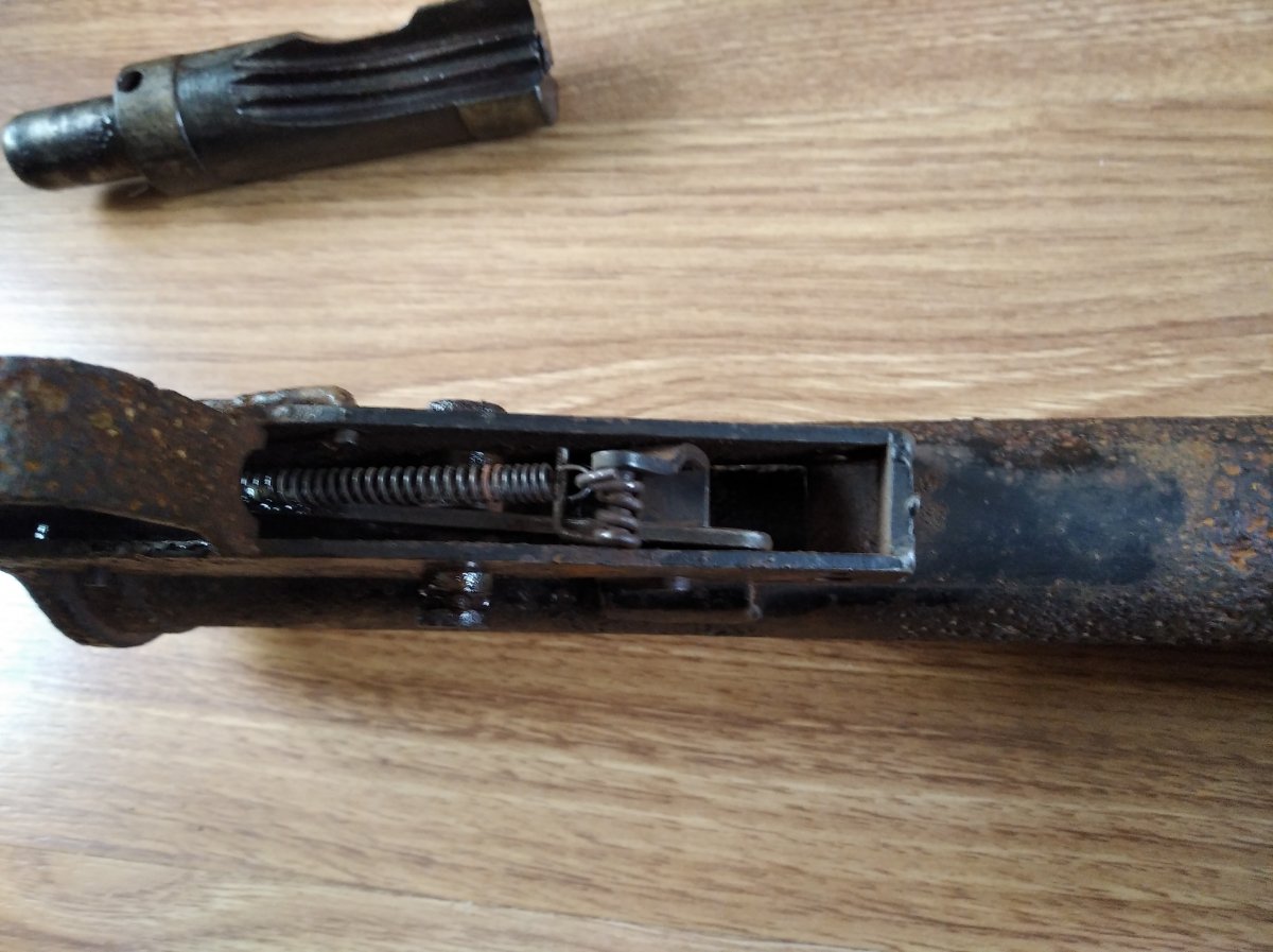 Доброго дня Камради! Оцініть будь-ласка такий предмет, ржавий но не коп,знайдений на горищі староі хати знайомим .Усм працюе ідеально,переключае одиночні очерідь,розбираеться майже все,окрім кожуха-треба відмочувати щоб розкрутити і кнопка магазину закисла.Ствол ржавий, нитки де не де проявляються,на СХП самий раз. Затвор ходить легко,не мае пружини.Розумників які вчать кримінальни кодекс, прошу тут не гадити в темі, тут ОЦІНКА !!! При продажі буде зроблений деактив де побажае покупець.Дякую !