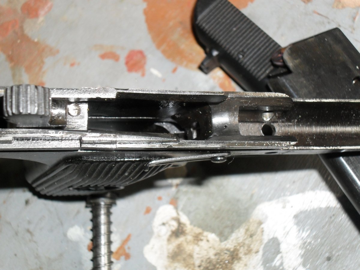 Кольца в затворе тоже восстановленные как по фото видно не профессионально вот оттуда и клинит , в рамке над спусковым крючком осталось отверстие ! По цене восстановленного макета УОС для товарища взяли неделю назад на форуме за 250 у.е.