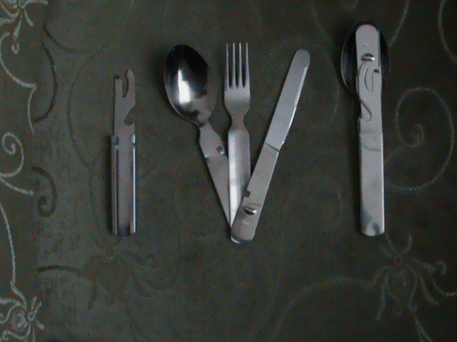 в комплект входит нож + ложка + вилка + открывашка