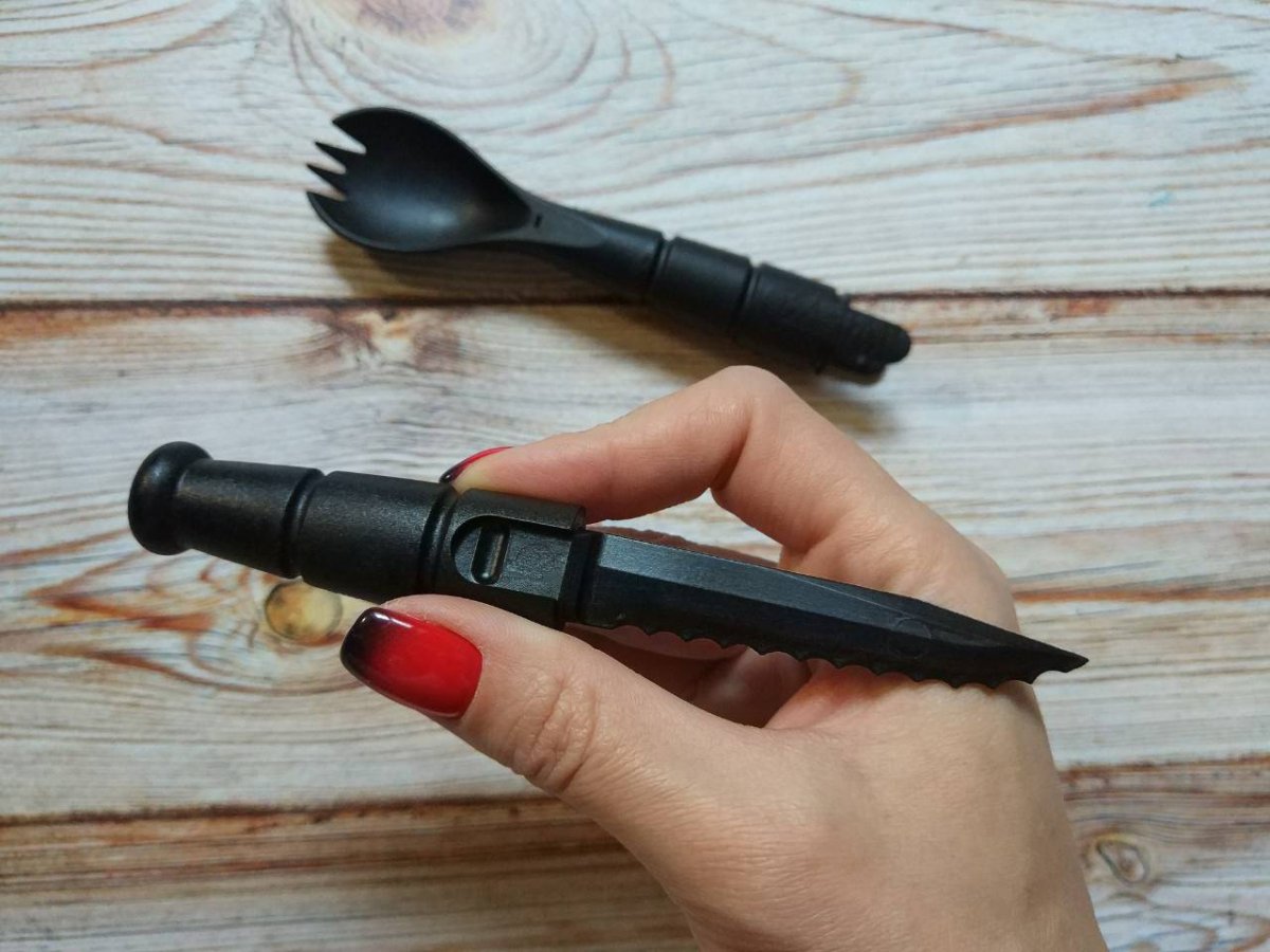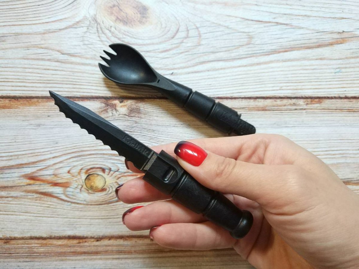 Предлагаю «тактический» набор ложка - нож - вилка KA-BAR Tactical Spork (9909). Оригинал. Существуют тактические ножи, тактические фонари, тактическое обмундирование и снаряжение самого разного, невероятного рода. Глядя на такое многообразие девайсов хочется задать вопрос, а почему так редко в наше внимание попадают «тактические» столовые принадлежности? Переживать не стоит – уже попали J. Американская компания Ka-Bar Knives, Inc. представила универсальный тактический дорожный набор столовых приборов для туристов, охотников, рыболовов и людей, ведущих активный образ жизни. Изделие под названием Ka-Bar Tactical Spork производится из сверхпрочного, термостойкого пищевого полимера Grilamid и представляет комбинацию ложки, вилки и съемного ножа, который надежно запрятан в рукоятку. Почему эта «ловилка» действительно интересная и полезная штука? Попробуем разобраться. Во-первых, наша «ловилка» очень небольшой аксессуар, который легко помещается в сумке, кармане или бардачке автомобиля. Сделана она из сверхпрочного, термостойкого пластика. Как можно заметить, в чашечке ложки предусмотрено несколько вилочных зубцов. Такая специфика конструкции может показать необычной и даже глупой, однако есть при помощи Ka-Bar Tactical Spork можно все что угодно: суп, кашу, тушенку, макароны и многое другое. Во-вторых, Ka-Bar Tactical Spork – это не два, а сразу три столовых инструмента. При необходимости рукоятка «ловилки» расстегивается, и она превращается еще и в нож. Нож полностью отделяется от конструкции ложки и может быть использован отдельно. Его характеристики помогут полностью удовлетворить любое кулинарное требование хозяина. Общая длина Tactical Spork составляет 175 миллиметров, а клинка — 63 миллиметра. При этом аксессуар весит всего 45 граммов. Tactical Spork сочетает в себе американское качество, добротность и безопасность и может прослужить много лет, не теряя вида и функциональности. Напоследок стоит отметить, что Ka-Bar Tactical Spork легко чиститься и моется, в том числе и от жира. Пользоваться «ловилкой» также очень легко. Переживать за застежку составных частей не стоит, она, как и весь инструмент сделана из высокотехнологичного полимера. Сама ложка абсолютно безопасна для человека, ей можно смело мешать суп на огне. Иначе говоря – это по-настоящему удачное приобретение для всех тех, кто в силу обстоятельств, долга или работы вынужден часто кушать вне стен родной уютной кухни. Ссылка модели на сайте производителя: https://www.kabar.com/products/product.jsp?item=9909 Парочка видео, для наглядности: Обзоры по этому изделию в сети есть, желающие могут дополнительно поискать-посмотреть. P.S. Надписи на упаковке могут незначительно отличаться от партии к партии. Нет в наличии. Стоимость: грн. Резервы в темке, вопросы, пожелания - в личку. Фото: В другие города отправляю Новой Почтой (оплата за доставку при получении, по тарифам перевозчика). Оплата на карту Приват банка. Смотрите и другие мои темки о продаже: Термокружка Contigo SnapSeal Byron Складной нож Cold Steel Broken Skull Blue Складной нож Kershaw Launch 3 Blue Нескладной нож Cold Steel Tai Pan CPM 3V Складной нож Kershaw Leek Складной нож SOG Flashback Складной нож Cold Steel Counter Point 1 Складной нож Kershaw DuoJet Нескладной нож Gerber Mark 2 Нескладной нож Cold Steel OSS Складной нож Kershaw Natrix Складной нож CRKT Helical Нескладной нож Cold Steel Counter Tac 2 Складной нож Kershaw Spline Складной нож Taylor Brands LLC (Schrade) SCHA12 Складной нож Cold Steel Golden Eye Tanto Складной нож Kershaw Tension Складно
