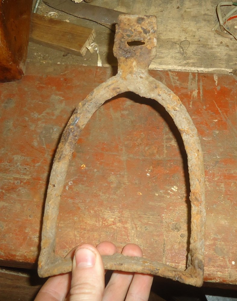 Отец нашёл такое вот стремено. каких времен? пробывал нога в тапочке не пролазит только в носке, думаю это татарва или хазары.