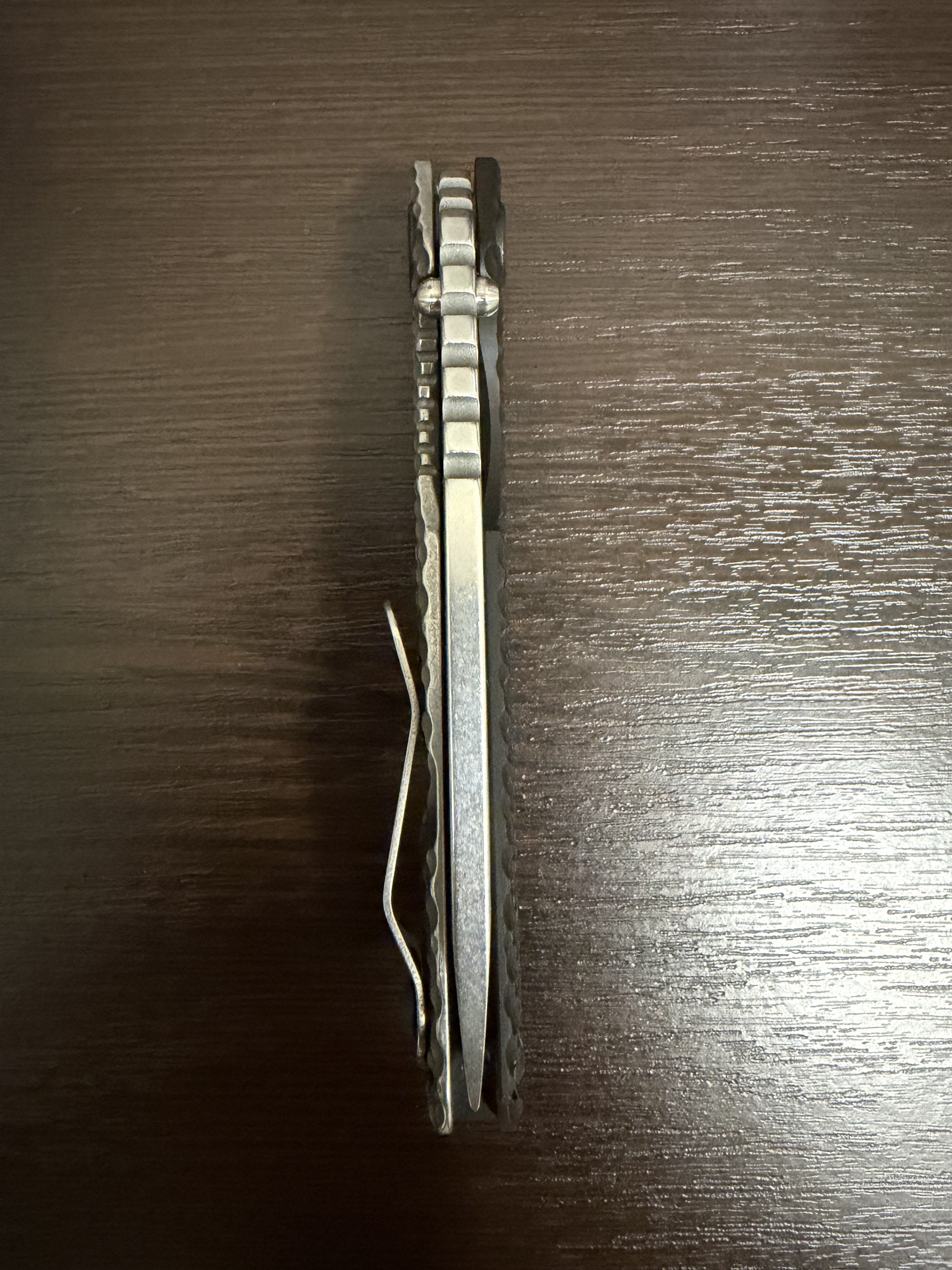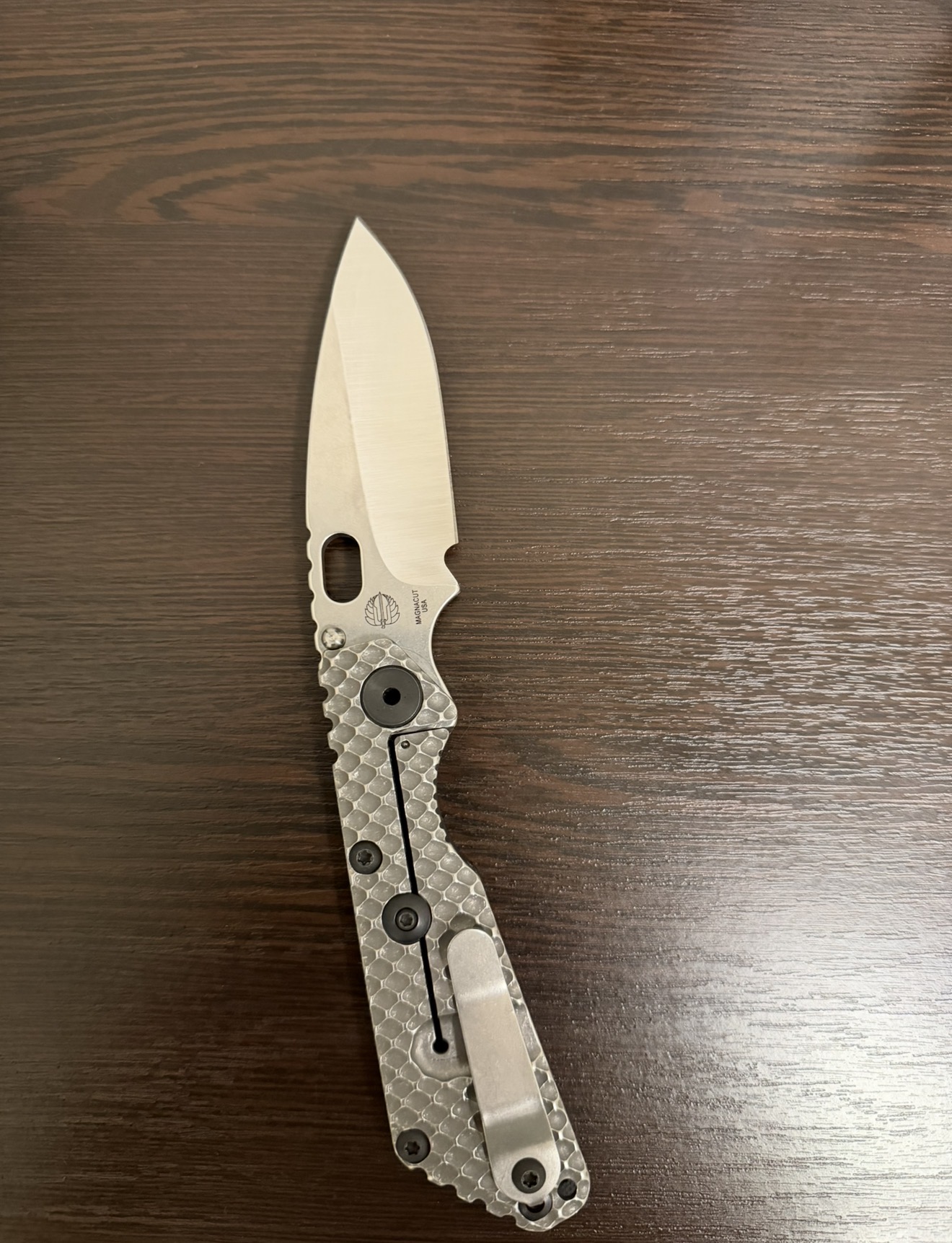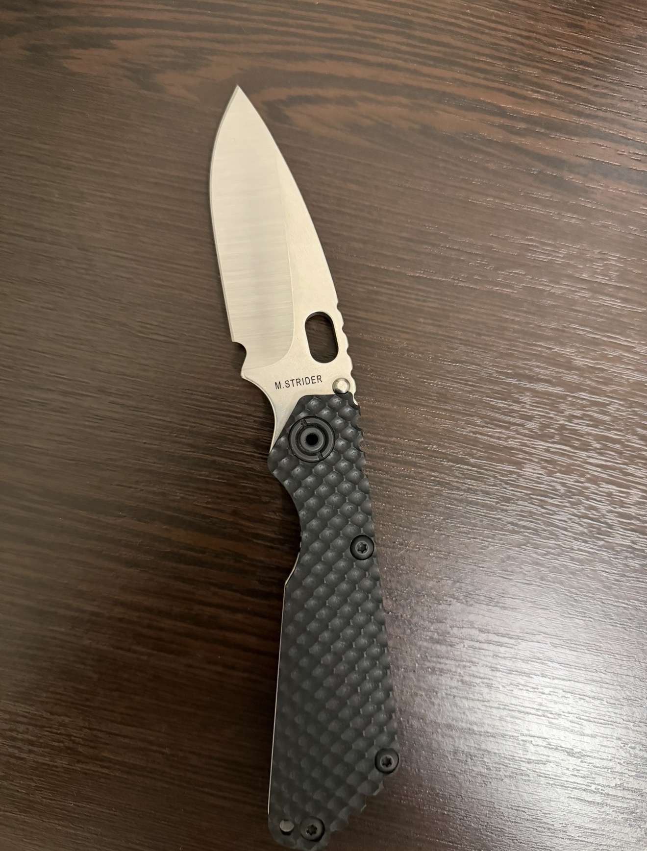 Strider SnG DGG MagnaCut Стан LNIB (не носився, не правивися, не розбирався) Рідкісний варіант у виконанні DGG та магнакаті. Клинок має 4 мм вздовж усього обуху, що компенсується увігнутими спусками. Характеристики: Загальна довжина: 209 мм Довжина клинка: 91 мм / 75 РК Товщина клинка: 4 мм Сталь: MagnaCut Матеріал руків'я: Титан + G10 Вага: 118 гр. Країна виробник: USA Ціна: $950.