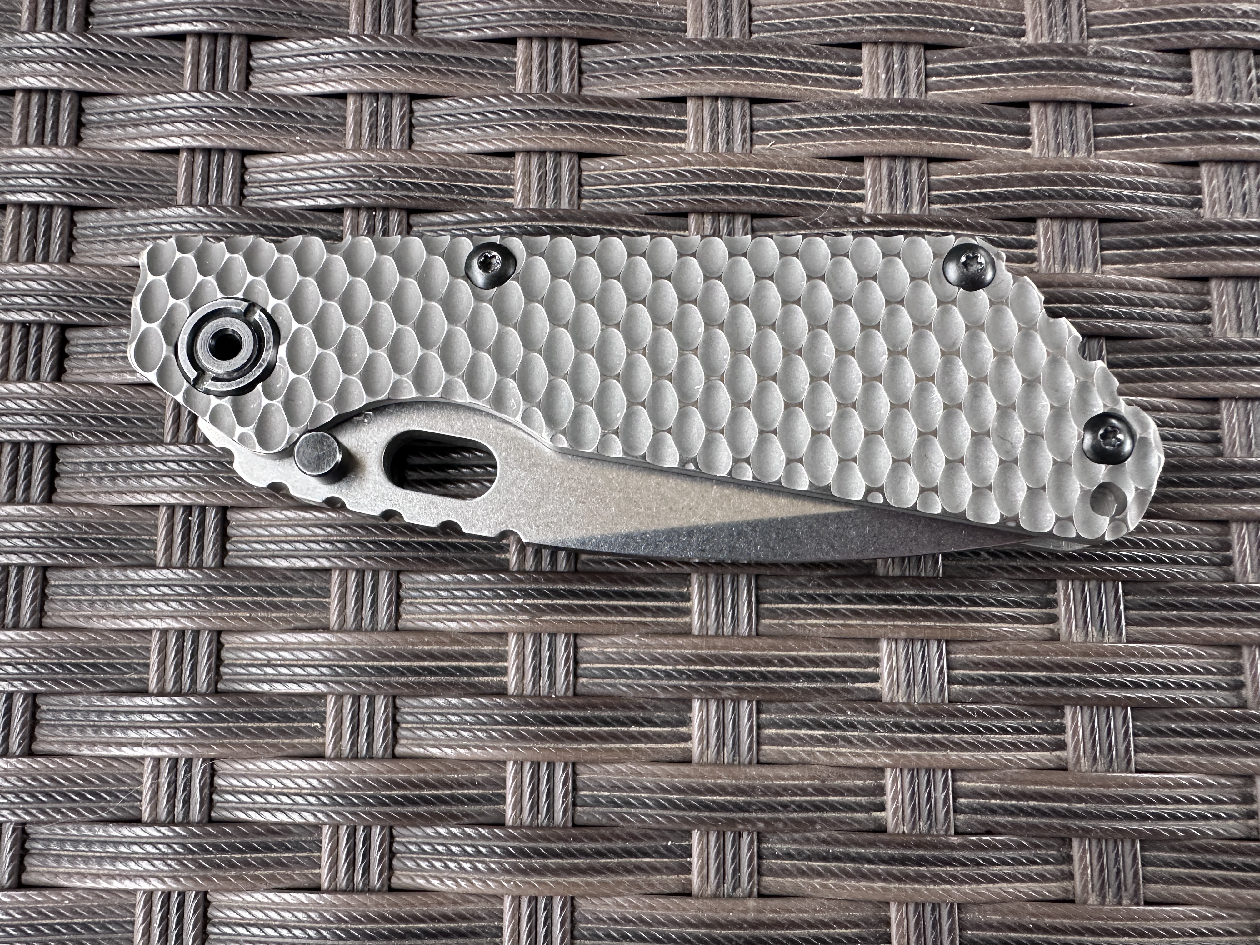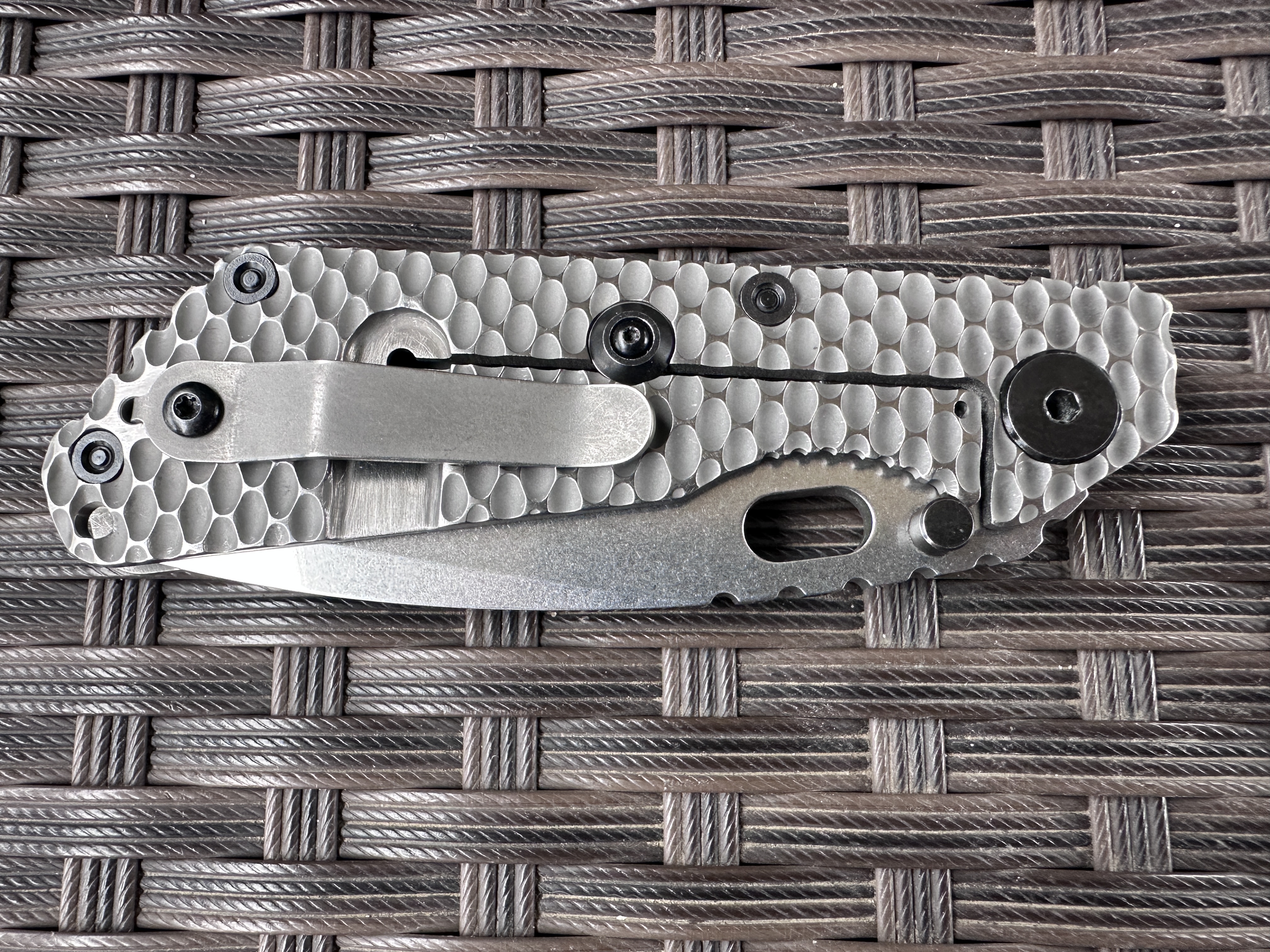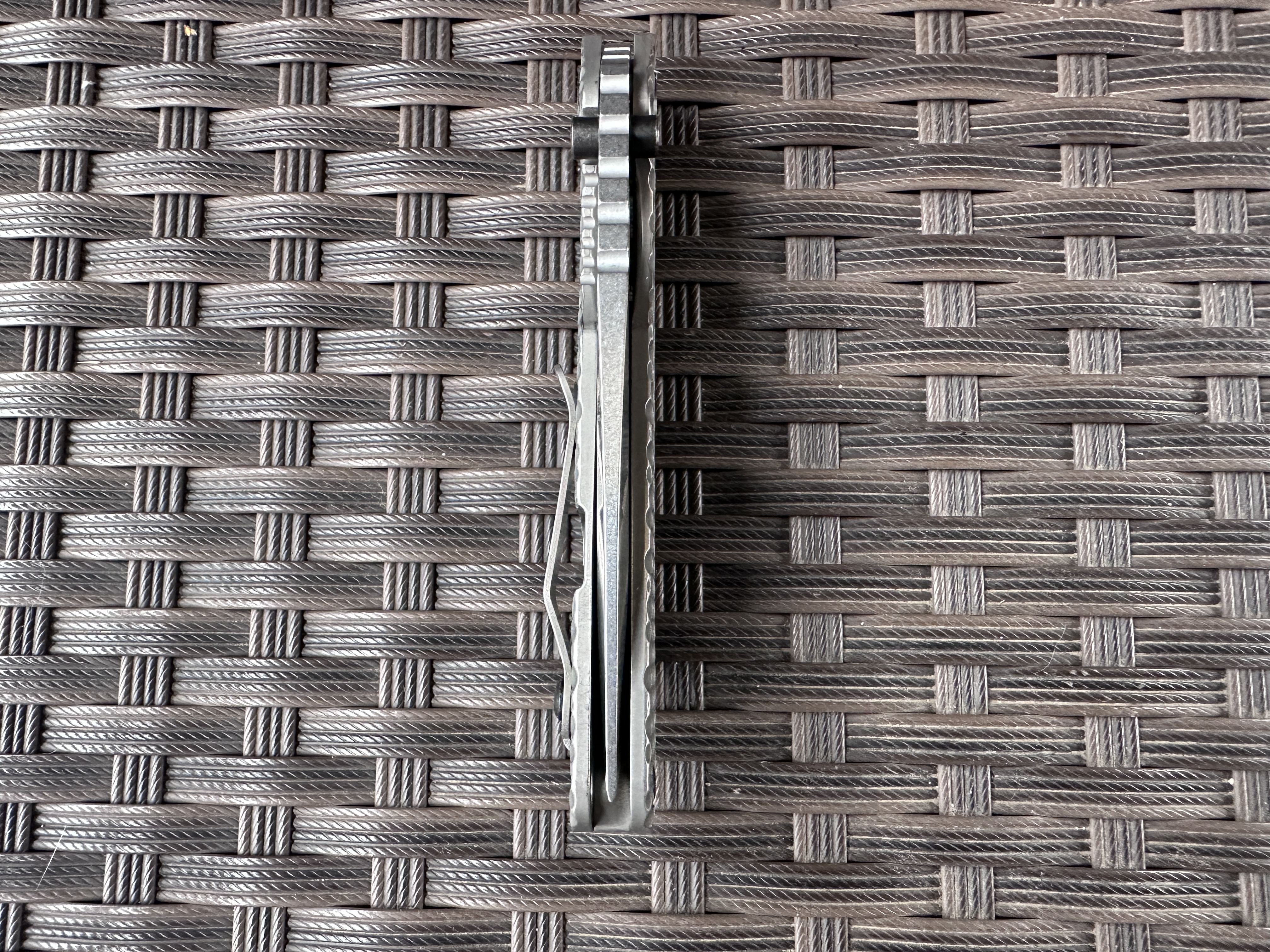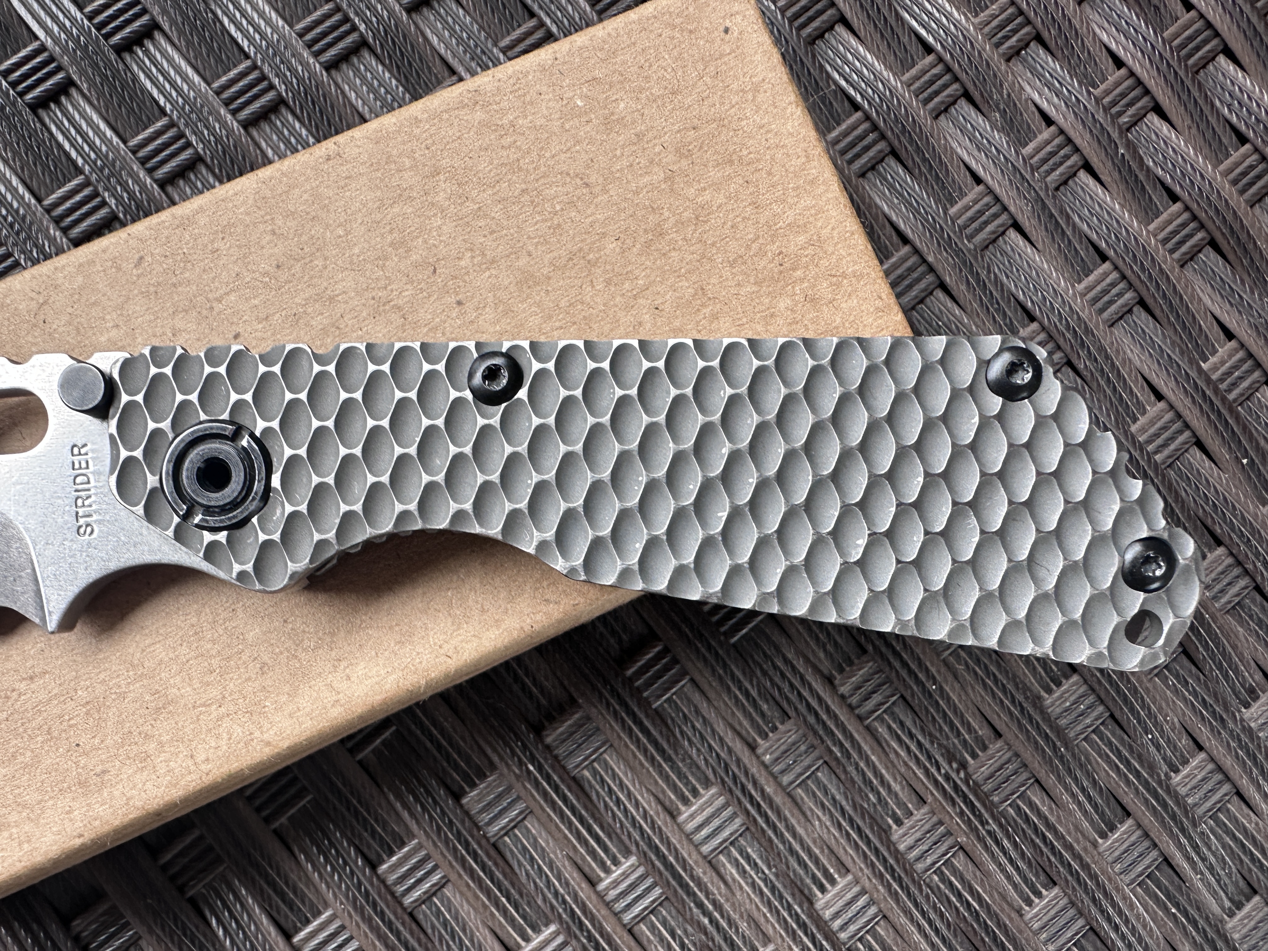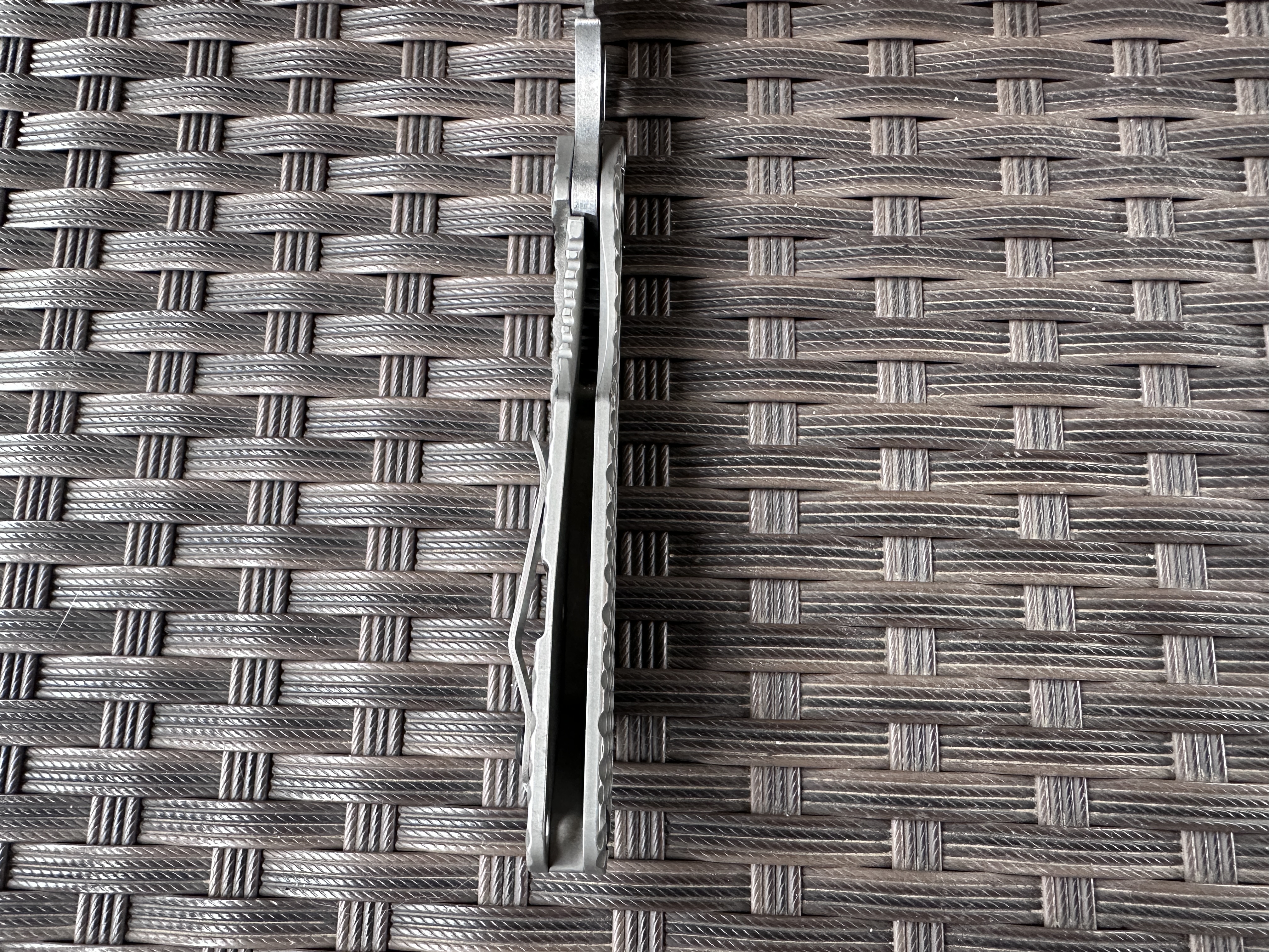 Strider SnG Tanto Ti/Ti Хорошая б/у реплика на клинке D2, нож тяжелой работы не видел клинок без царапин но заточку требуют. Нож разбирался смазывался Крис Рива смазкой. По плашкам проводилась обработка для сглаживания сот, чтоб не ел карман. Механика отличная клин падает под своим весом, люфтов нет, клин по центру. Отличный ломик для любой работы. Цена: 3400 грн. Условное б/у, оценка 9/10 Оплата по договору, пересылка за счет покупателя! Характеристики: Общая длина: 208 мм Длина клинка: 92 мм Обух: 4 мм Материал клинка: D2 Финиш клинка: Stonewash Рукоять: Titanium/Titanium Замок: Frame Lock Осевой узел: шайбы Вес: 146 г